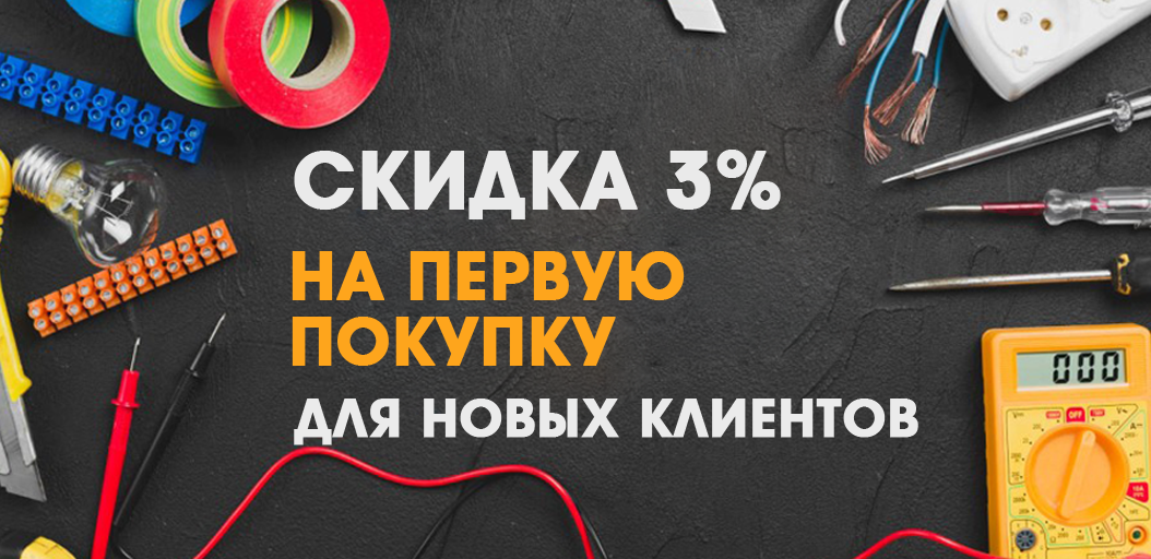 При совершении первой покупки в сети магазинов "Электромастер" или оформлении заказа в интернет-магазине Вы получаете скидку 3%.