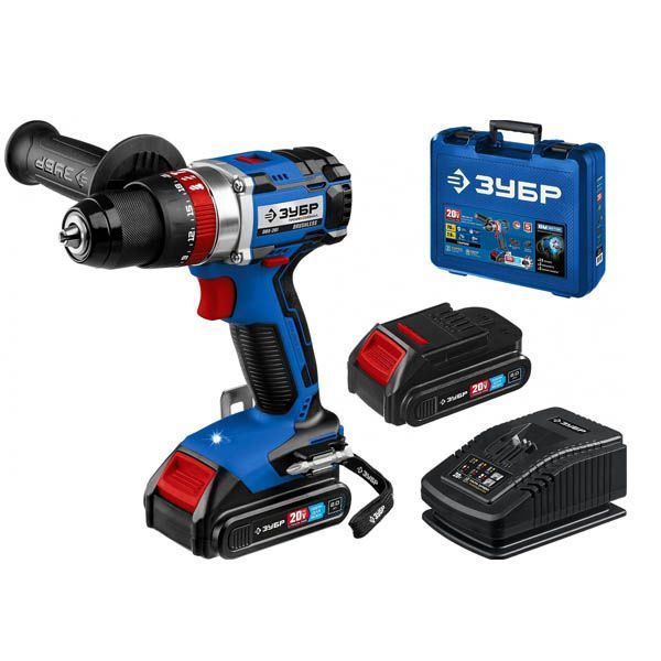 Аккумуляторная дрель-шуруповёрт ударная 20В 2 аккумулятора 2.0Ач бесщеточная кейс Профессионал ЗУБР (DBS-201-22) УЦЕНКА