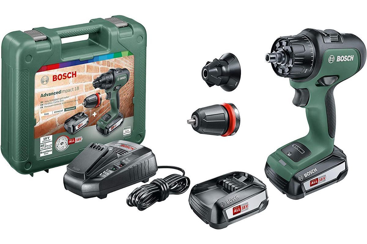 Аккумуляторная дрель-шуруповерт AdvancedImpact в обновленном минималистичном дизайне от Bosch - идеальное решение для работ по сверлению и заворачиванию. Инструмент оснащен бесщеточным двигателем, что обеспечивает большую мощность, долговечность и малый вес инструмента. Запатентованный Bosch переключатель направления вращения - просто легко нажмите на любой из курков справа или слева на корпусе инструмента - направление изменится и световой индикатор укажет вам это. Инструмент оснащен 2-х скоростным планетарным редуктором и быстрозажимным сверлильным патроном с технологией Bosch Autolock на 13 мм. Помимо сверлильного патрона в комплектацию входит магнитный держатель для бит, с которым удобно работать инструментом в режиме заворачивания, а также угловая и эксцентриковая насадки. При включении инструмент всегда начинает работу в направлении заворачивания, то есть всегда готов к сверлению и заворачиванию шурупов (80% всех работ). Специальный карман для бит/шурупов на корпусе инструмента позволяет держать оснастку всегда под рукой. Микросхема Syneon Chip анализирует нагрузку на инструмент при работе и оптимизирует подачу энергии - аккумулятор дольше сохраняет заряд и служит вам дольше, ввиду меньшего цикла зарядок за срок службы. Li-ion аккумулятор не имеет саморазряда и эффекта памяти - инструмент всегда готов к работе и не теряет заряд в состоянии покоя. AdvancedImpact 18 является частью системы аккумуляторного инструмента Bosch Home&Garden и совместима с другими электроинструментами и садовой техникой Bosch.