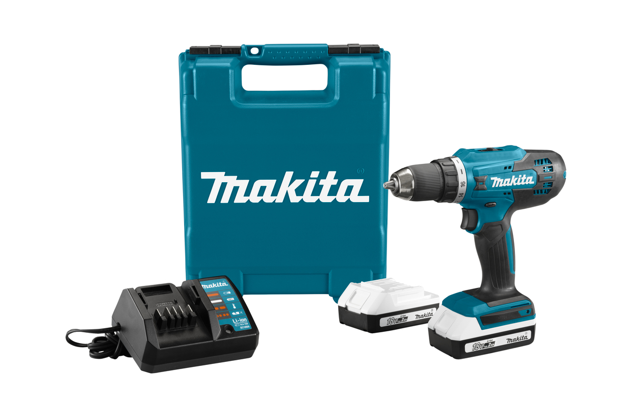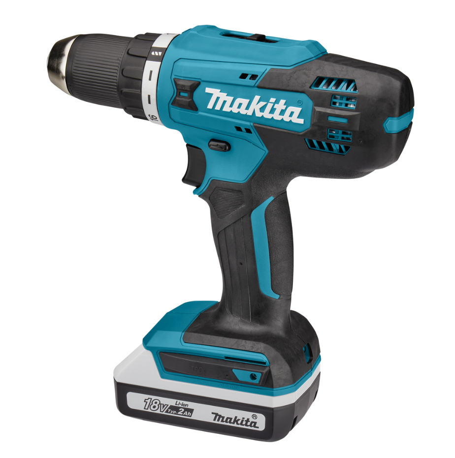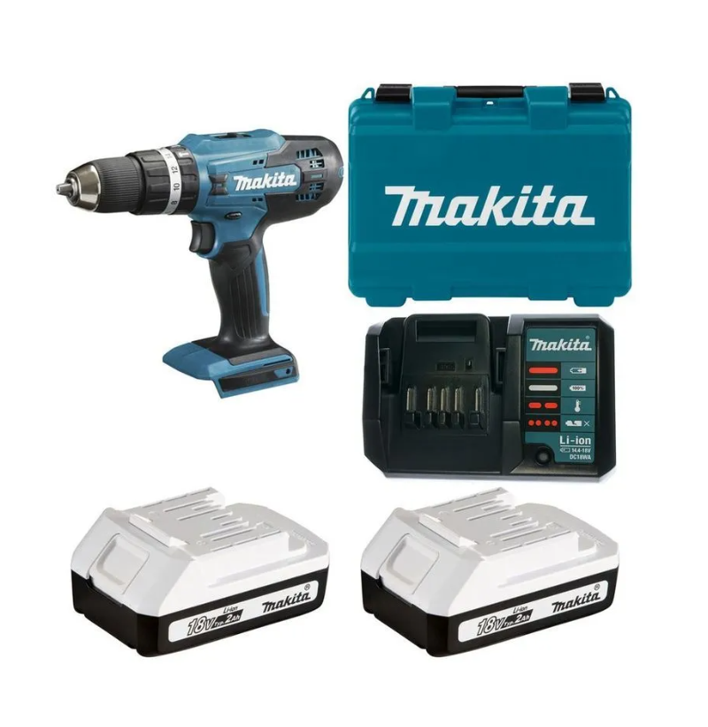 Акумм. дрель-шуруповерт 18В 13мм 42/24Нм (2х2.0Ач з/у) (ударный) G-серия Makita для сверления отверстий в древесине и стали. Дрель-шуруповерт для выполнения большого спектра работ по сверлению и закручиванию. Аккумуляторная дрель-шуруповерт, используется при сборке мебели, выполнении ремонтных и отделочных работ в зданиях и на улице. Двухскоростной редуктор упрощает ведение работ: первая скорость предназначена для заворачивания шурупов, вторая - для сверления.