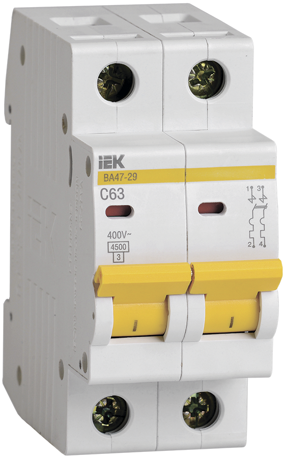 Автоматические выключатели ВА47-29 предназначены для защиты распределительных и групповых цепей, имеющих различную нагрузку. Автоматические выключатели ВА47-29 рекомендуются к применению в вводно-распределительных устройствах для жилых и общественных зданий. Преимущества: Два типа защиты от перегрузки и короткого замыкания. Полный комплект дополнительных устройств с возможностью простой самостоятельной установки. Усовершенствованная дугогасительная система. Возможность одновременного присоединения шиной FORK и гибким проводником для распределения питания цепи через верхние зажимы. Возможность соединения шиной PIN. Наличие индикатора положения контактов. Новый эргономичный дизайн рукоятки включения/выключения. Насечки на контактных зажимах снижают тепловые потери и увеличивают механическую устойчивость соединения.