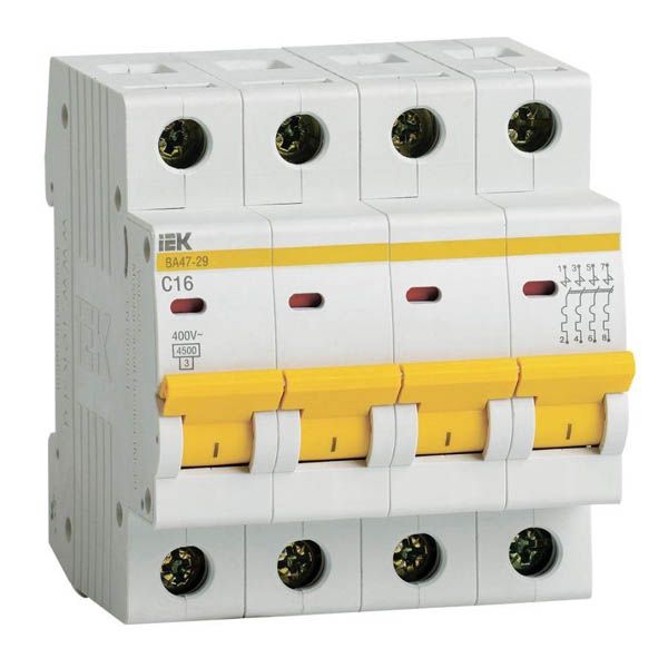 Автоматический выключатель 4п С16 4.5кА ВА 47-29 ИЭК MVA20-4-016-C.