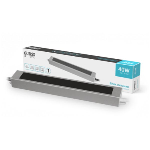 Блок питания для светодиодных лент 40Вт 12В 220х30х20мм IP67 GAUSS Basic