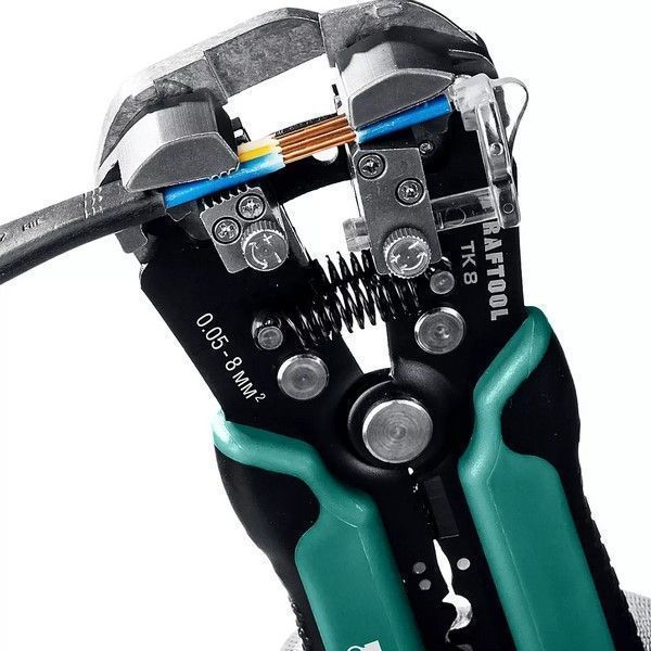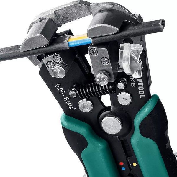 Стриппер автоматический многофункциональный TK-8 KRAFTOOL 22637, предназначен для снятия изоляции без повреждения внутренних жил. Инструменты для снятия изоляции KRAFTOOL, изготовлены из высококачественной стали с закалкой рабочих поверхностей, предназначены для профессионального применения. Обладают повышенным ресурсом, обеспечивают наивысшее качество электромонтажных работ. Автоматическая настройка зажимных губок, одновременная зачистка до 3-х проводов, а также окно для сброса обрезков изоляции. Съемный регулятор длины снятия изоляции с винтом, фиксирующим его положение. Дополнительный микрорегулятор для снятия изоляции в диапазоне 0.05–0.2 мм.