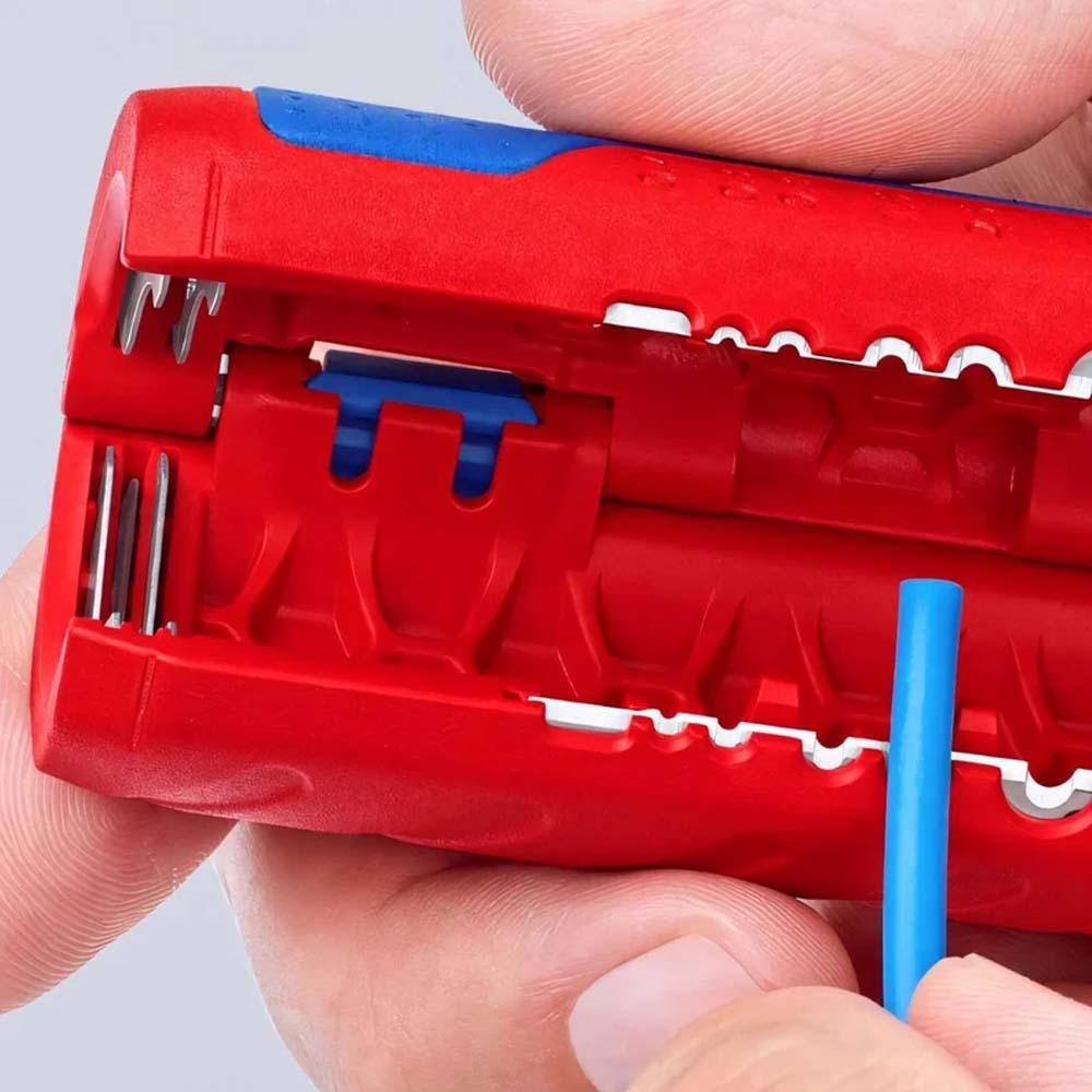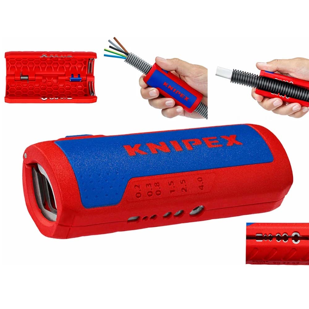Инструмент для снятия изоляции 0.2-4мм² и резки труб Ø 13-32мм KNIPEX обладает прочным корпусом и удобным нескользящими накладками. Использование инструмента существенно упрощает снятие изоляции. Имеется регулировка глубины реза, что позволяет работать с проводами различного типа.