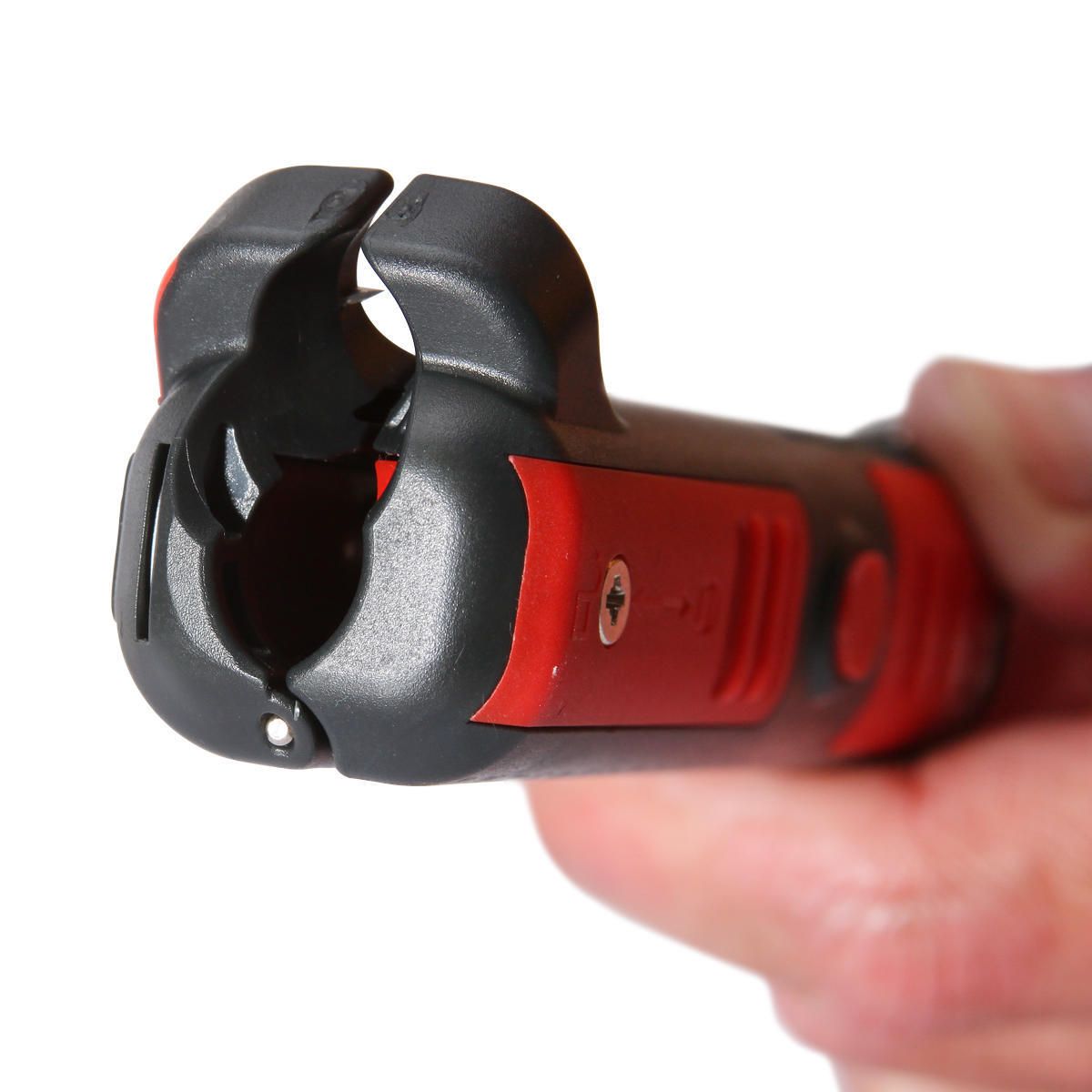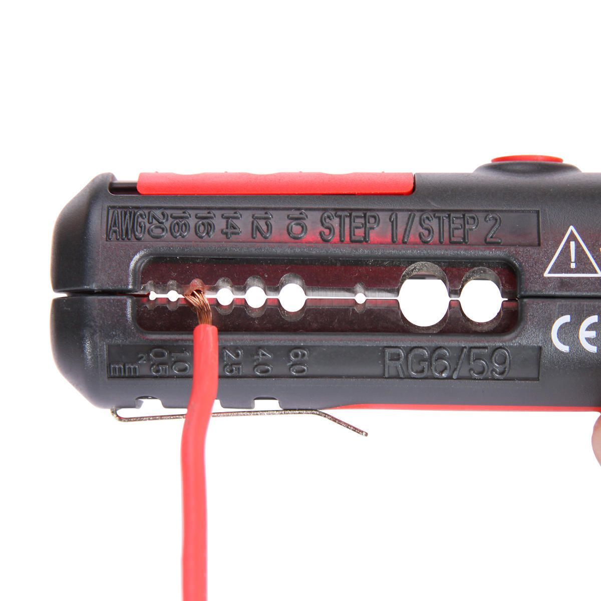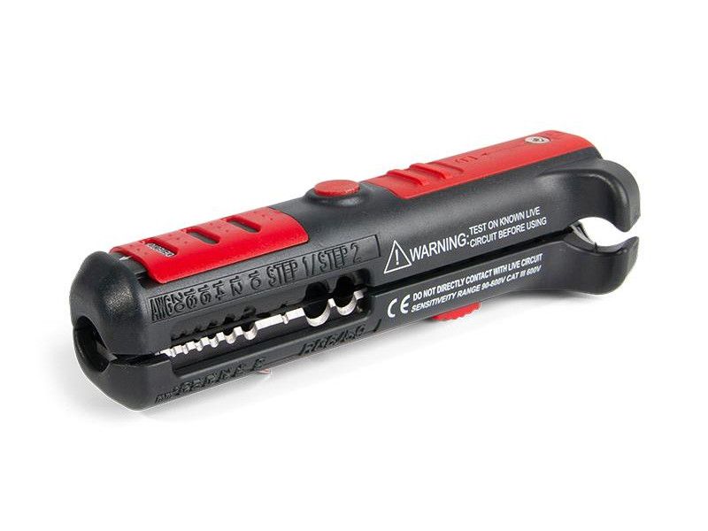 Ручной стриппер представляет собой компактную рукоятку, состоящую из двух ответных частей с симметрично расположенными, прецизионно заточенными профилями для снятия жильной изоляции, разделки коаксиального кабеля и V-образных лезвий для снятия оболочки с круглых кабелей, расположенного в торцевой части рукоятки. Замок-фиксатор удерживает рукоятку в сложенном состоянии. Модуль для продольной разделки изоляции круглых кабелей представляет собой губки для захвата кабеля, на одной из которых в зоне разделки размещен не регулируемый нож. Стриппер WS-20 «Вольтмастер» (КВТ) оснащен детектором переменного напряжения, который позволяет определить наличие напряжение в электросети, либо его отсутствие.