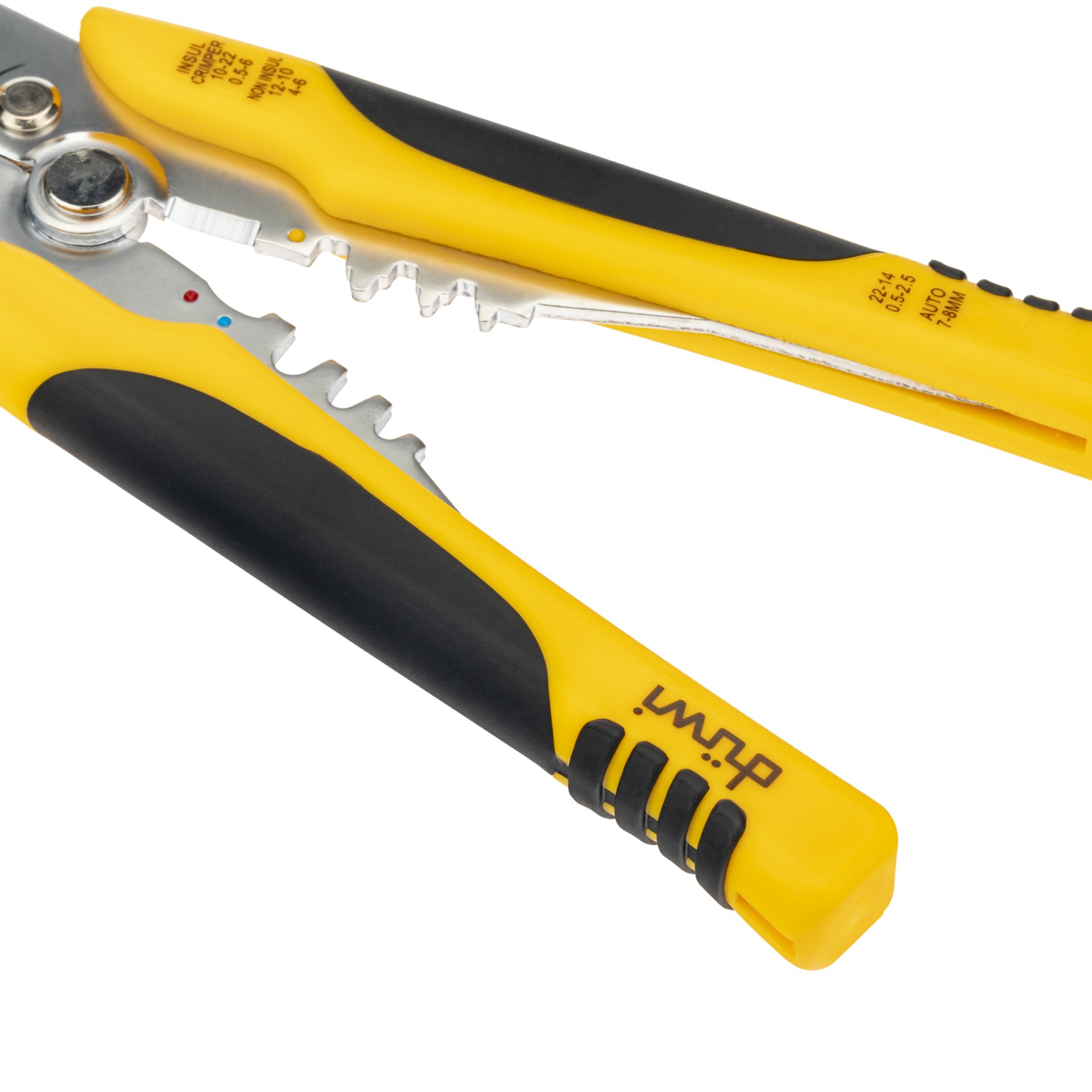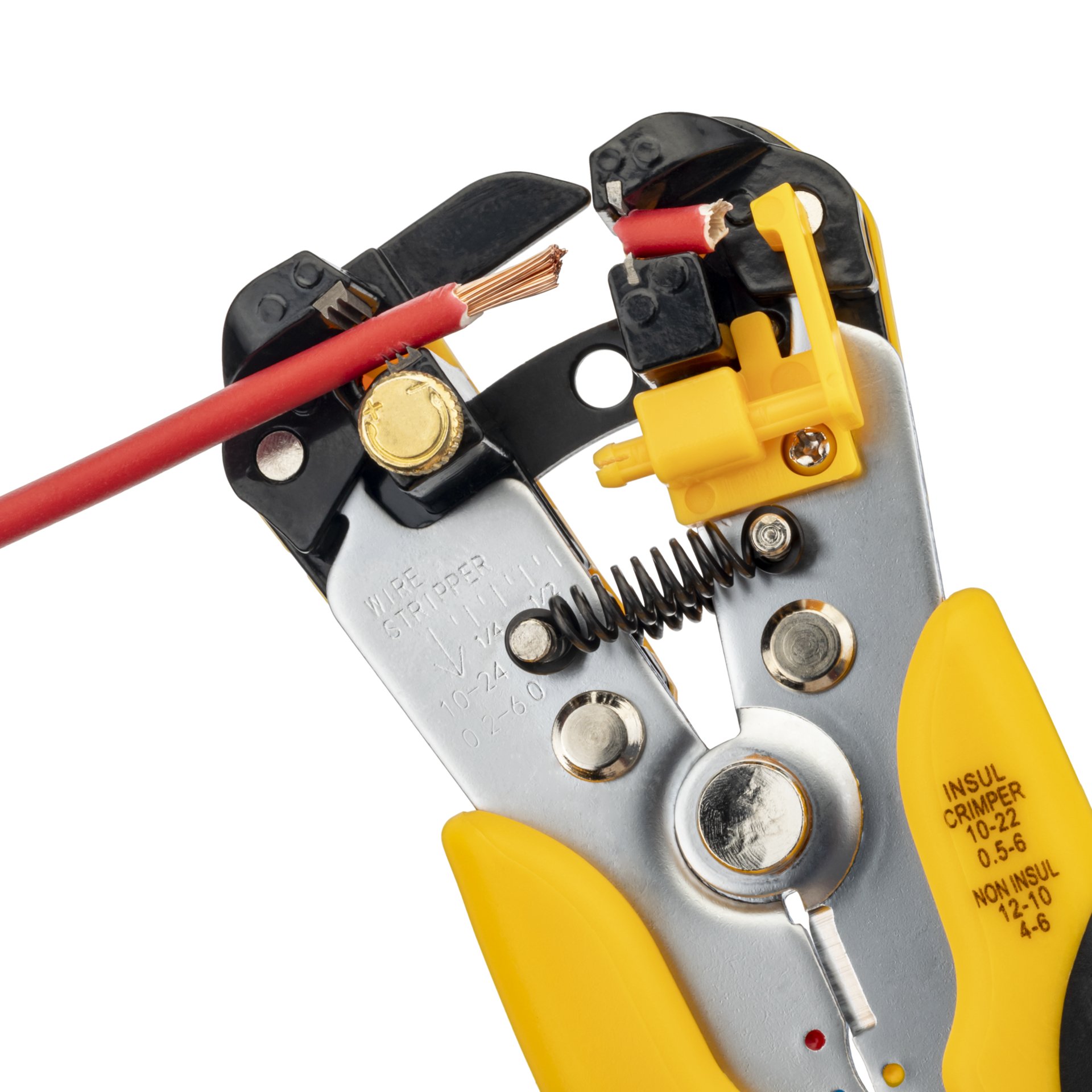 Инструмент предназначен для зачистки проводов сечением 0.5-6.0 мм² и обрезки проводов сечением до 6 мм², а также для обжима наконечников и гильз.
