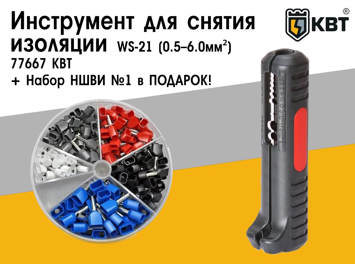 Инструмент для снятия изоляции WS-21 (0.5–6.0мм²) +Набор НШВИ №1 сечение 0.5-2.5мм² КВТ АКЦИЯ