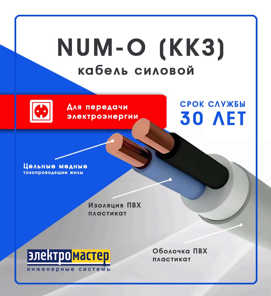 Кабель NUM-O 2х2.5 от Калужского кабельного завода (ККЗ) — это современный, надежный силовой кабель для стационарной прокладки внутри зданий и сооружений. Он предназначен для передачи и распределения электроэнергии в сетях переменного тока напряжением до 660 Вольт. Кабель соответствует строгим отечественным стандартам (ГОСТ 31996-2012) и изготовлен по ТУ, что гарантирует его высокое качество и безопасность. Идеальное решение для монтажа силовых и осветительных линий в квартирах, домах, офисах и промышленных объектах.