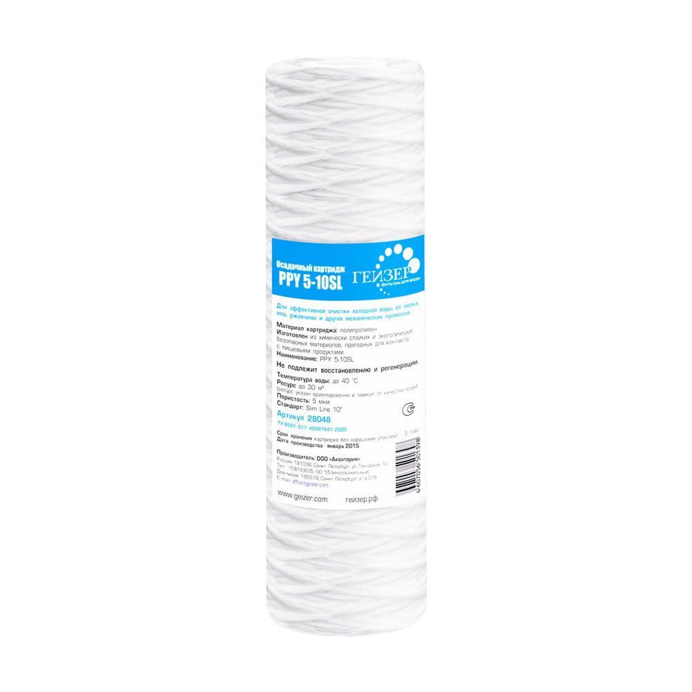 Картридж для механической очистки полипропиленовый шнур 10SL 5мкм для ХВС PPY 5 - 10SL Гейзер