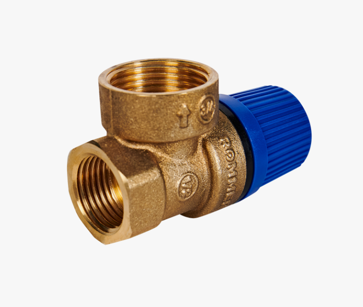 Настроен на срабатывание при давлении 6 бар и имеет подключения 1/2 и 3/4 дюйма. Изготовлен из латуни CW617N, рабочая среда — вода или водный раствор гликоля до 50 %.