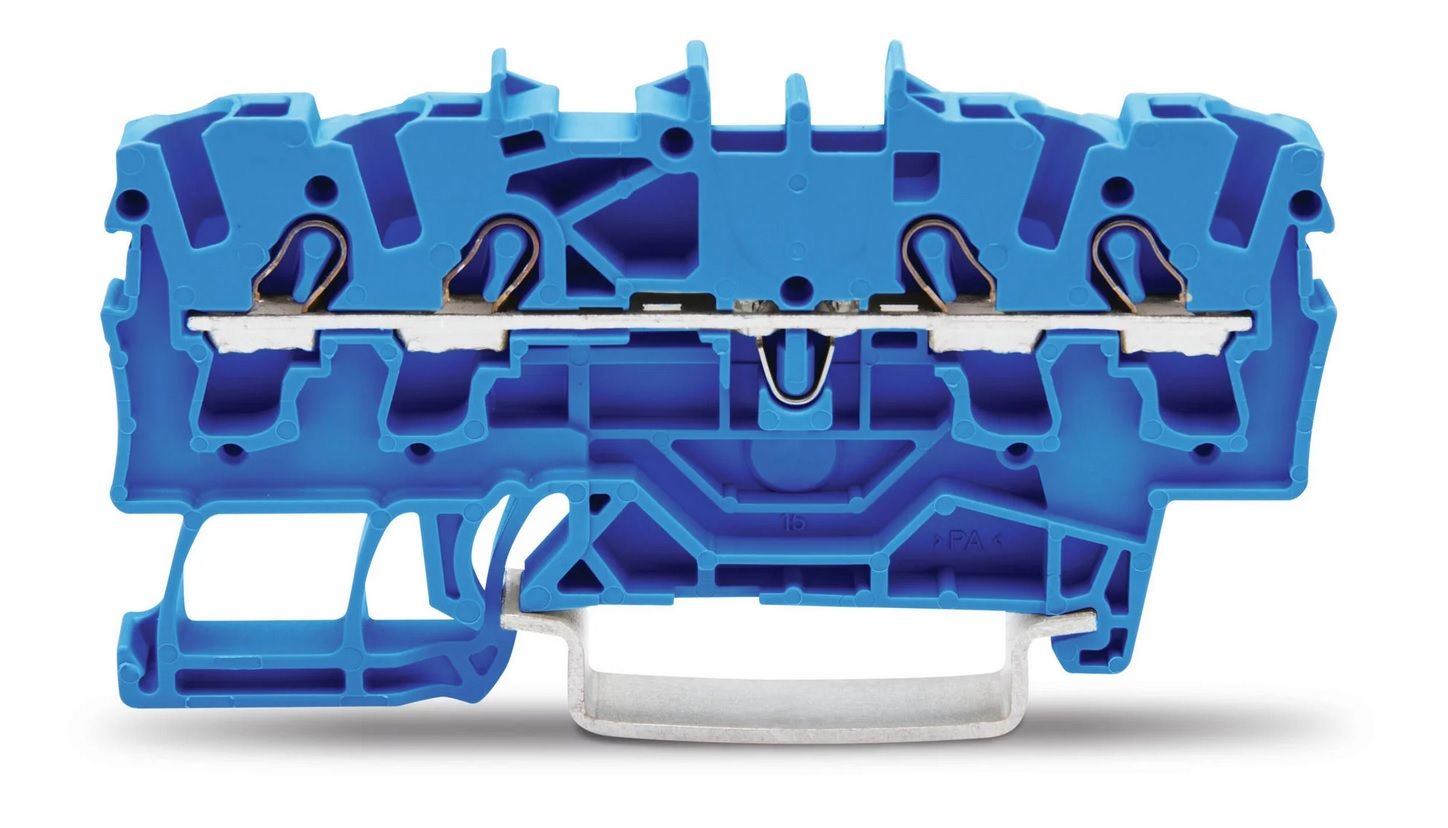 2002-1404 4-проводная проходная клемма с 2,5 мм2 (синяя) WAGO используется для закрепления проводов в щитках, приборах и аппаратах.