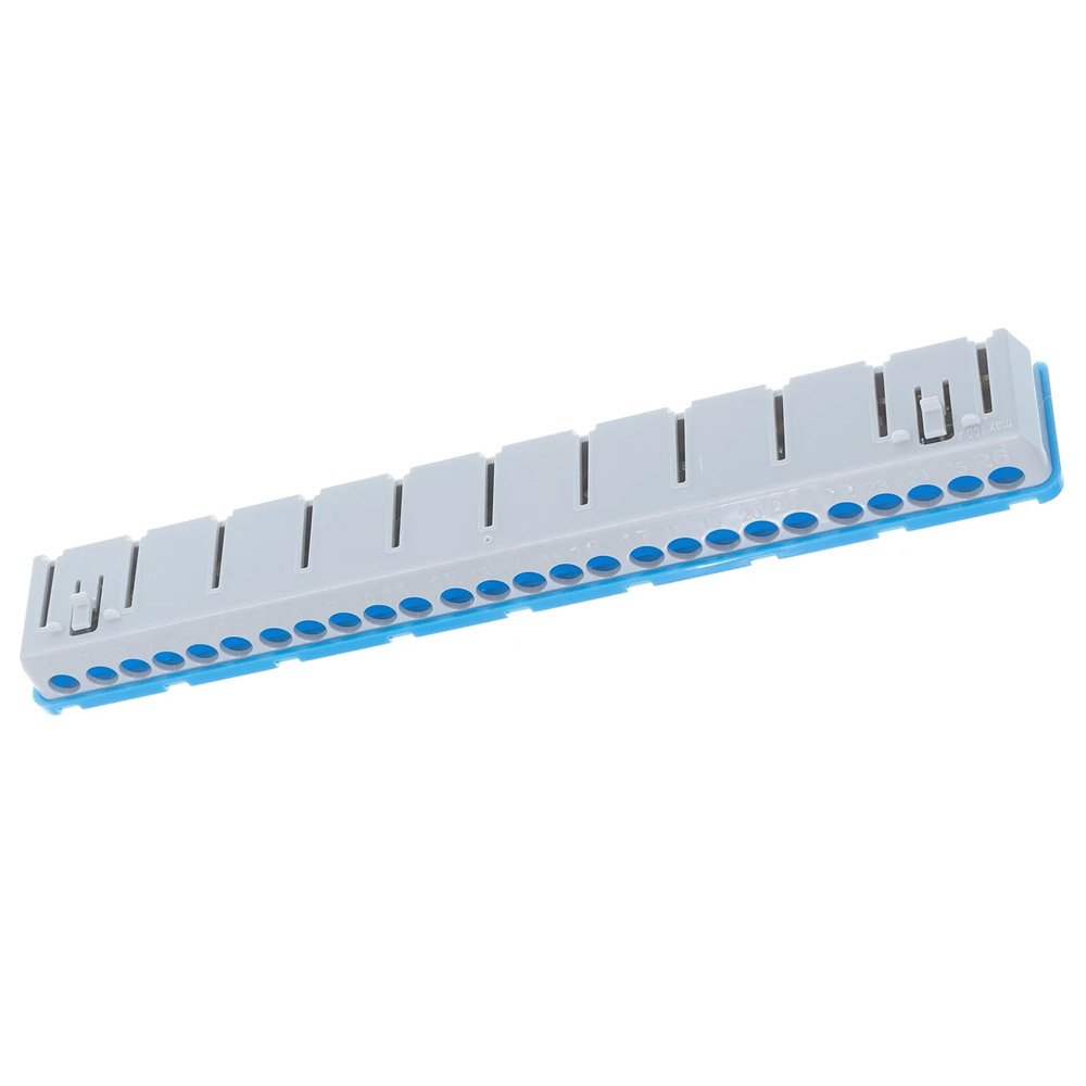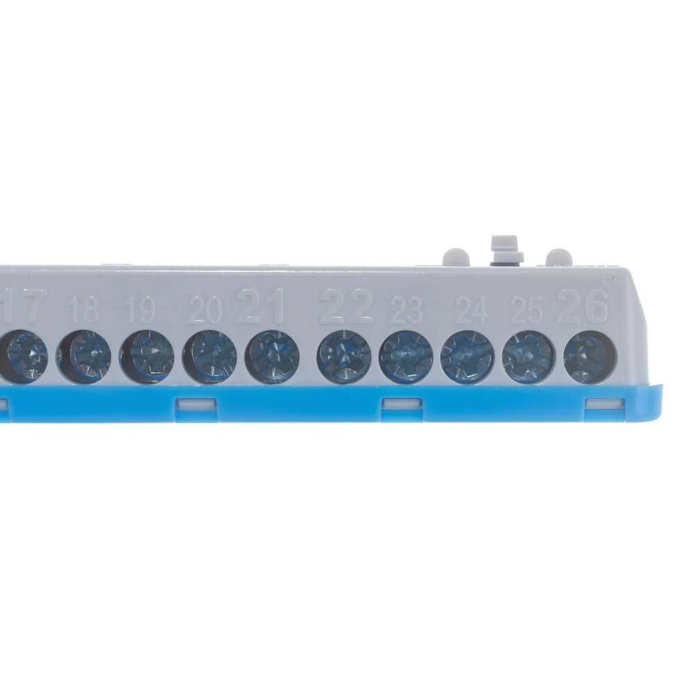 Клемный блок предназначен для коммутации жил проводов и кабелей, а также для соединения нулевого провода и провода заземления. Клеммные блоки выполнены в интуитивно понятных цветах: нейтраль (N) – синий, земля (PE) – зелёный.