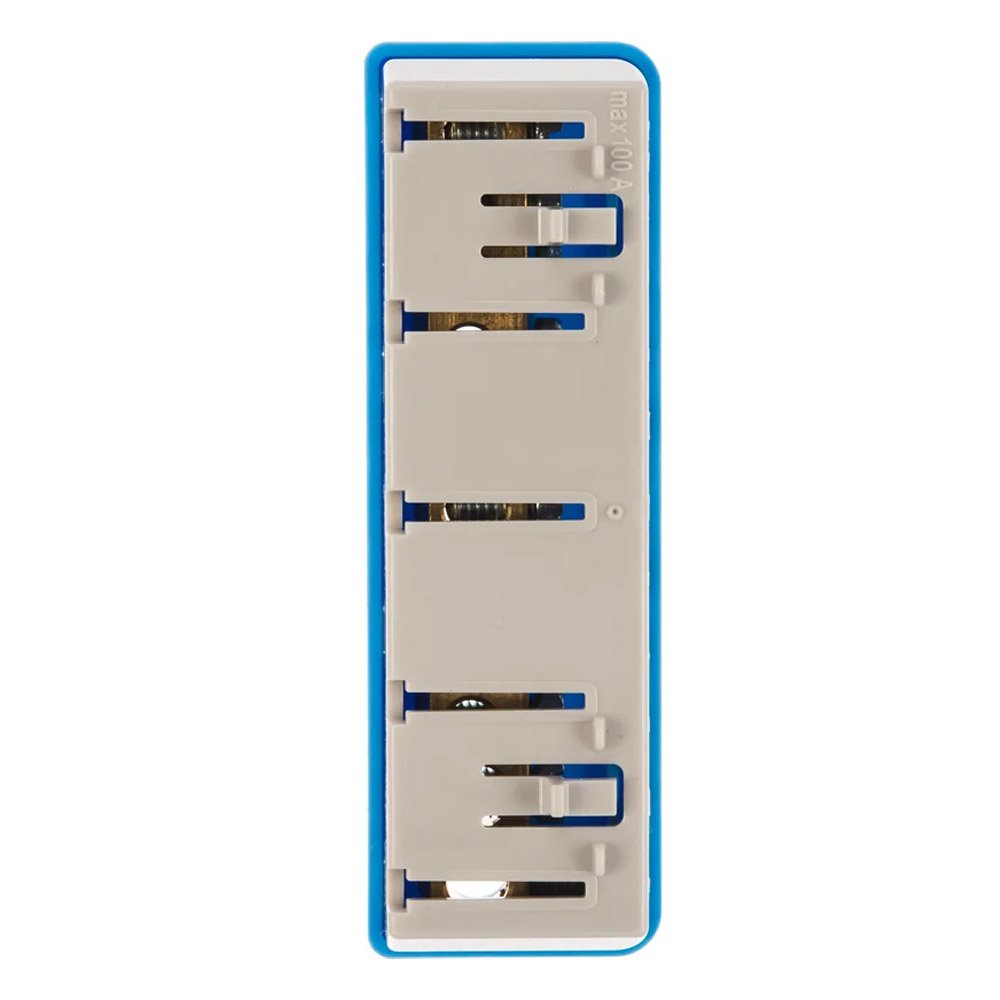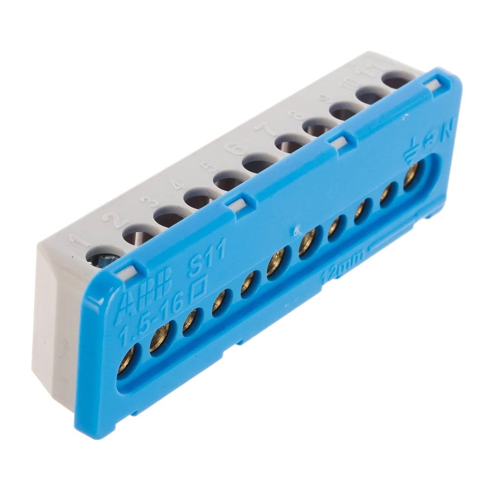 Клемный блок предназначен для коммутации жил проводов и кабелей, а также для соединения нулевого провода и провода заземления. Клеммные блоки выполнены в интуитивно понятных цветах: нейтраль (N) – синий, земля (PE) – зелёный.