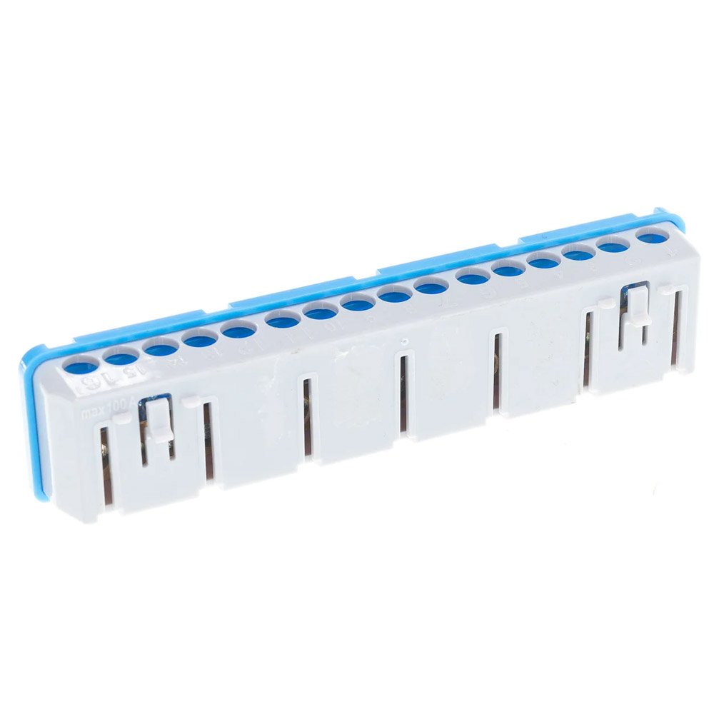 Клемный блок предназначен для коммутации жил проводов и кабелей, а также для соединения нулевого провода и провода заземления. Клеммные блоки выполнены в интуитивно понятных цветах: нейтраль (N) – синий, земля (PE) – зелёный.