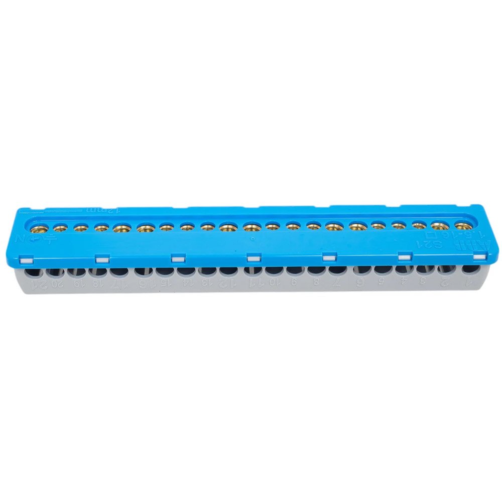 Клемный блок предназначен для коммутации жил проводов и кабелей, а также для соединения нулевого провода и провода заземления. Клеммные блоки выполнены в интуитивно понятных цветах: нейтраль (N) – синий, земля (PE) – зелёный.