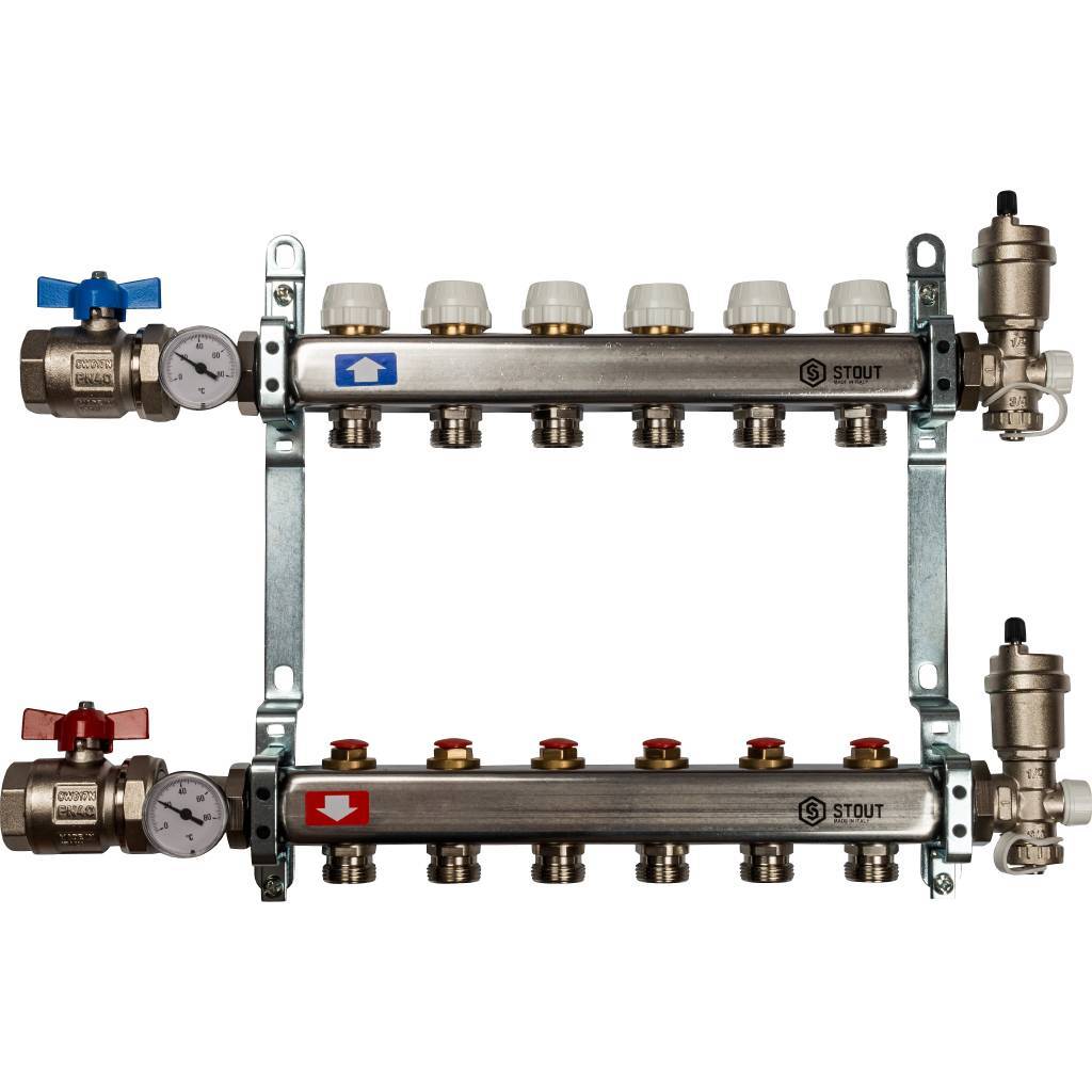 Коллекторная группа из нержавеющей стали в сборе без расходомеров 1"/3/4"x6 STOUT