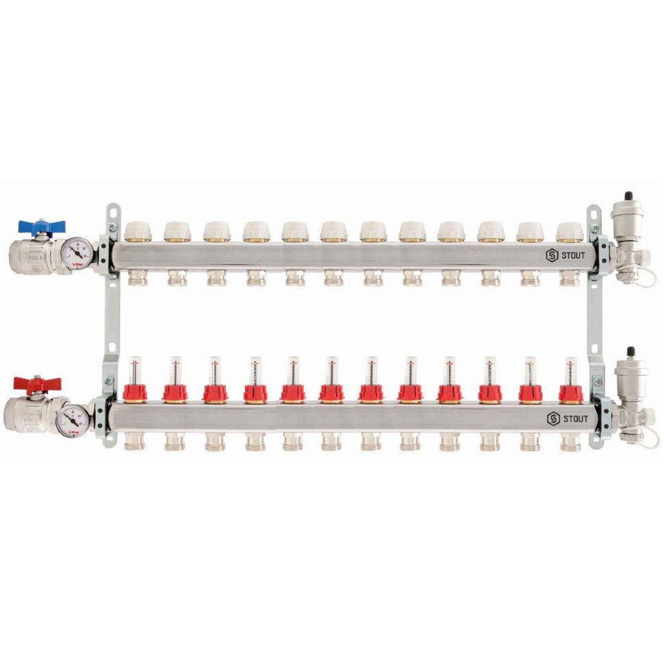Коллекторная группа из нержавеющей стали в сборе с расходомерами 1"/3/4"x13 STOUT