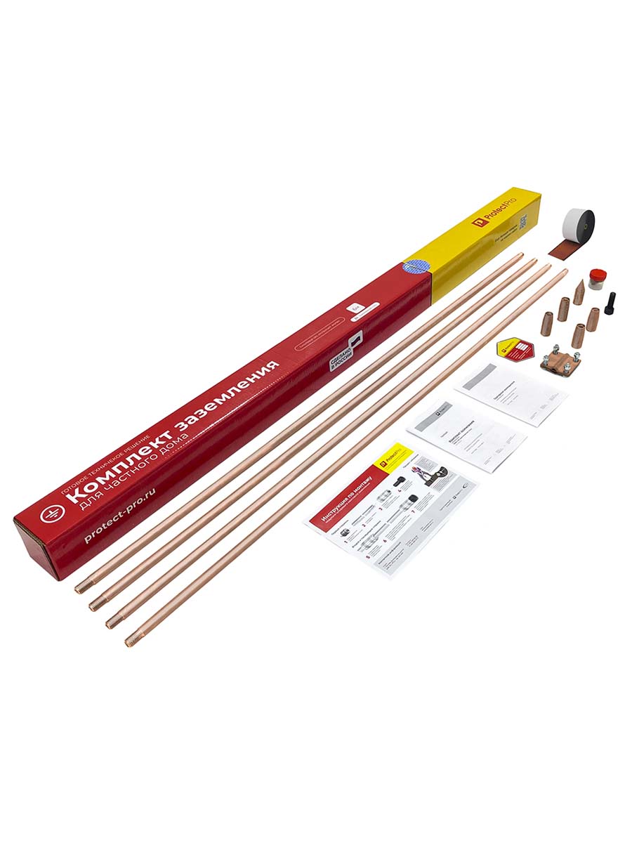 Комплект заземления омедненный (6 метров 14мм 4х1500мм)  в коробке ProtectPro предназначен для создания заземляющего устройства объектов индивидуального строительства и инфраструктуры.