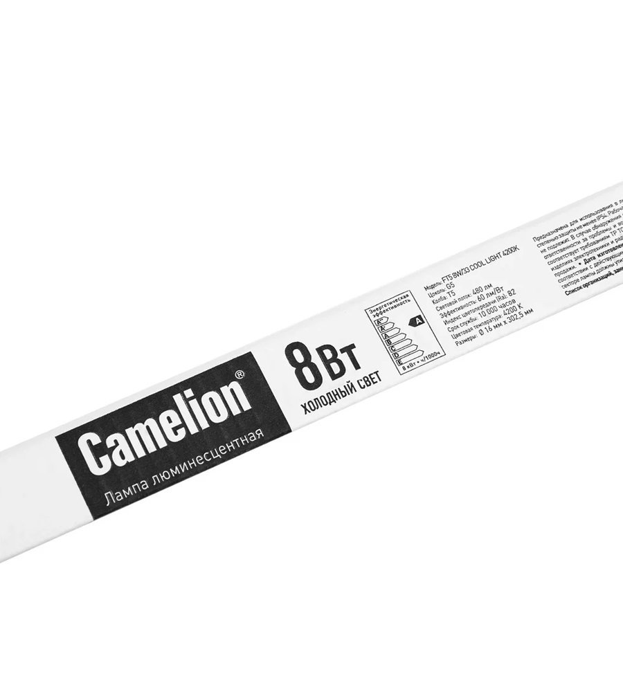 Лампа люминесцентная FT5-8W/33 G5 4200К 350Лм Camelion предназначена для освещения различного рода помещений: классов, аудиторий, конференц-залов, офисных кабинетов, коридоров.