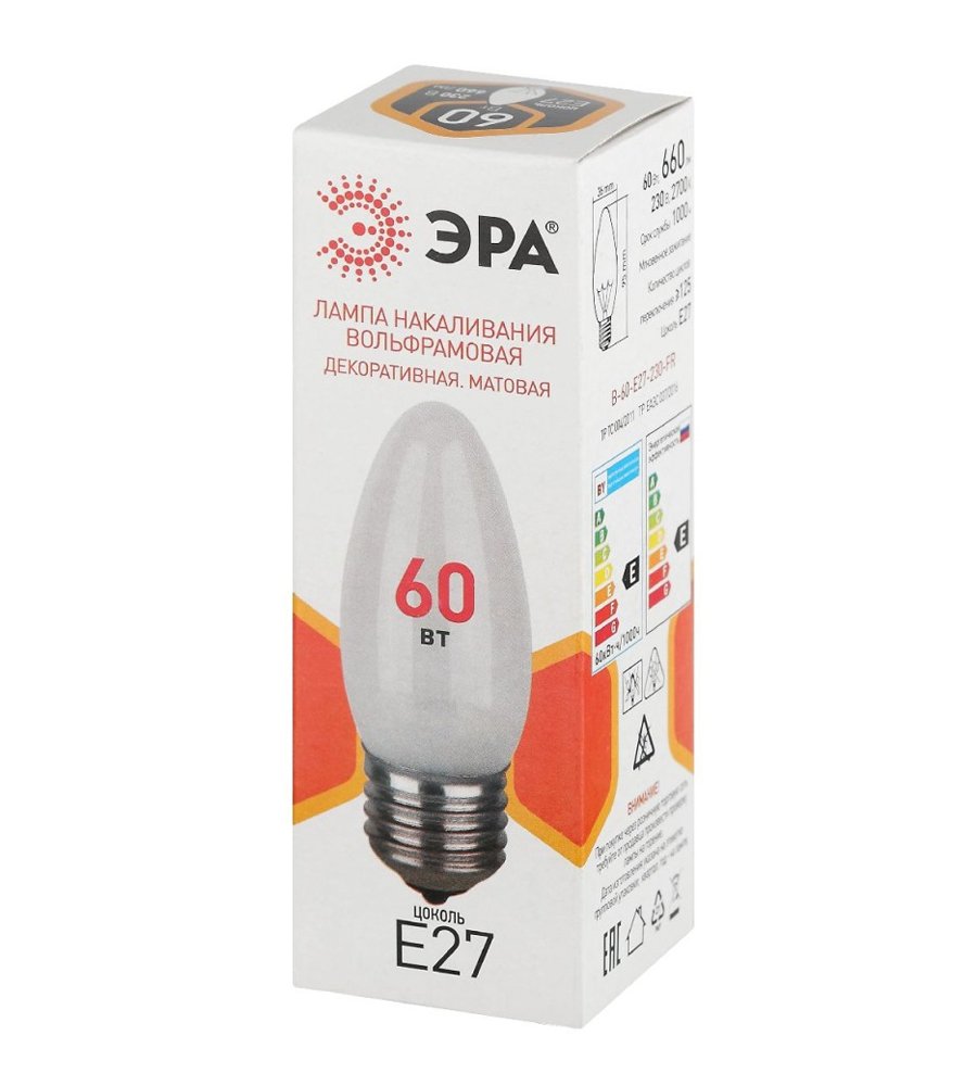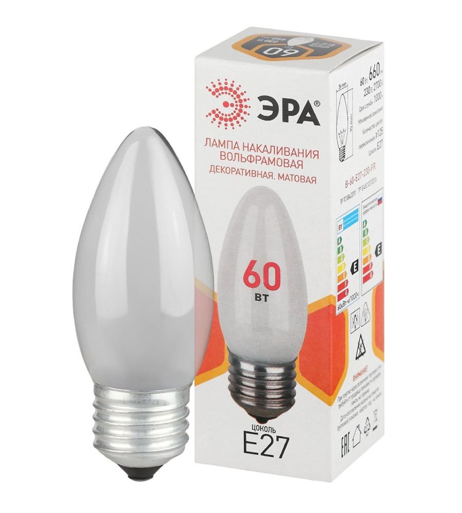 Лампа накаливания свеча CLAS B FR 60Вт 660Лм E27 матовая ЭРА предлагает оптимальное освещение для любого пространства, благодаря своей универсальности и энергоэффективности.