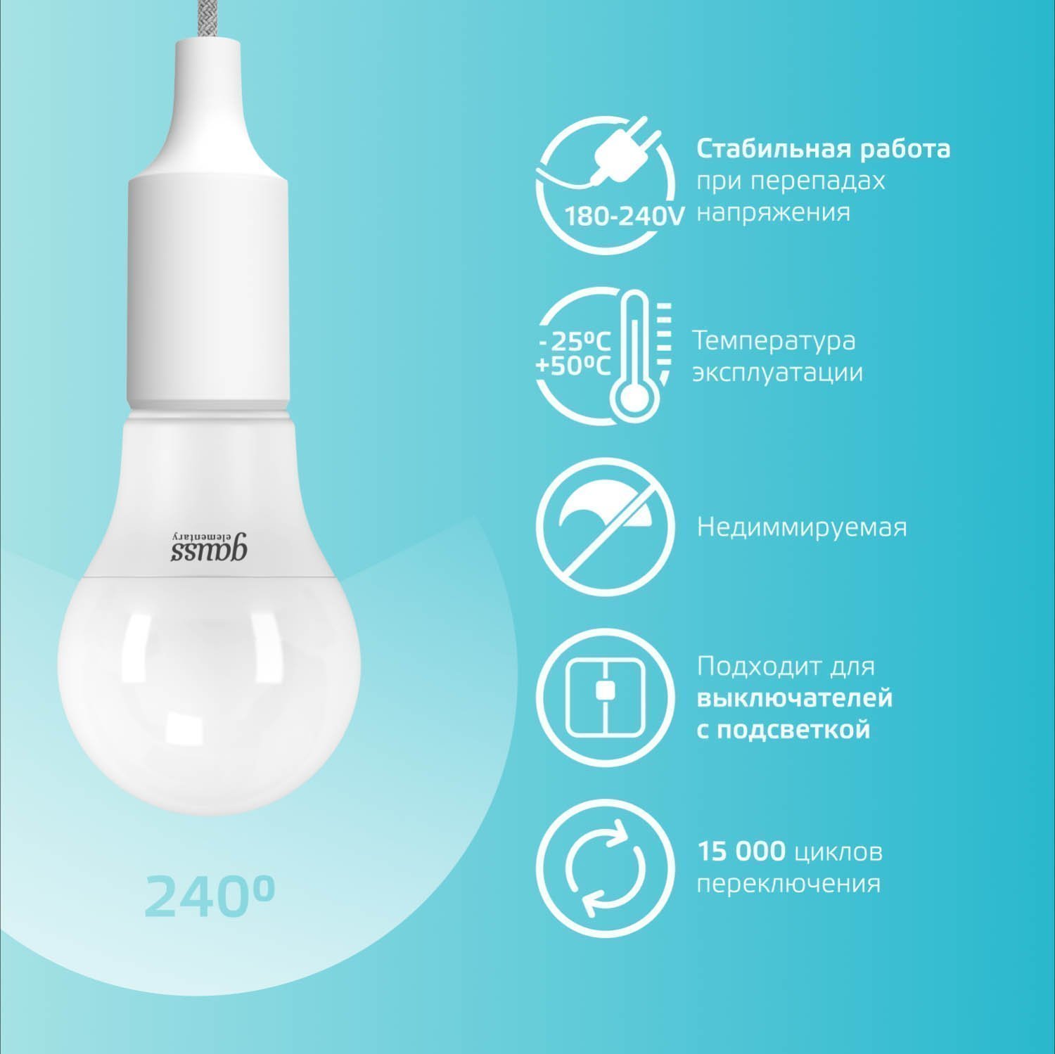 Лампа светодиодная Elementary А60 10Вт 4100К 920Лм Е27 Gauss предназначена для освещения помещений общественного назначения.
