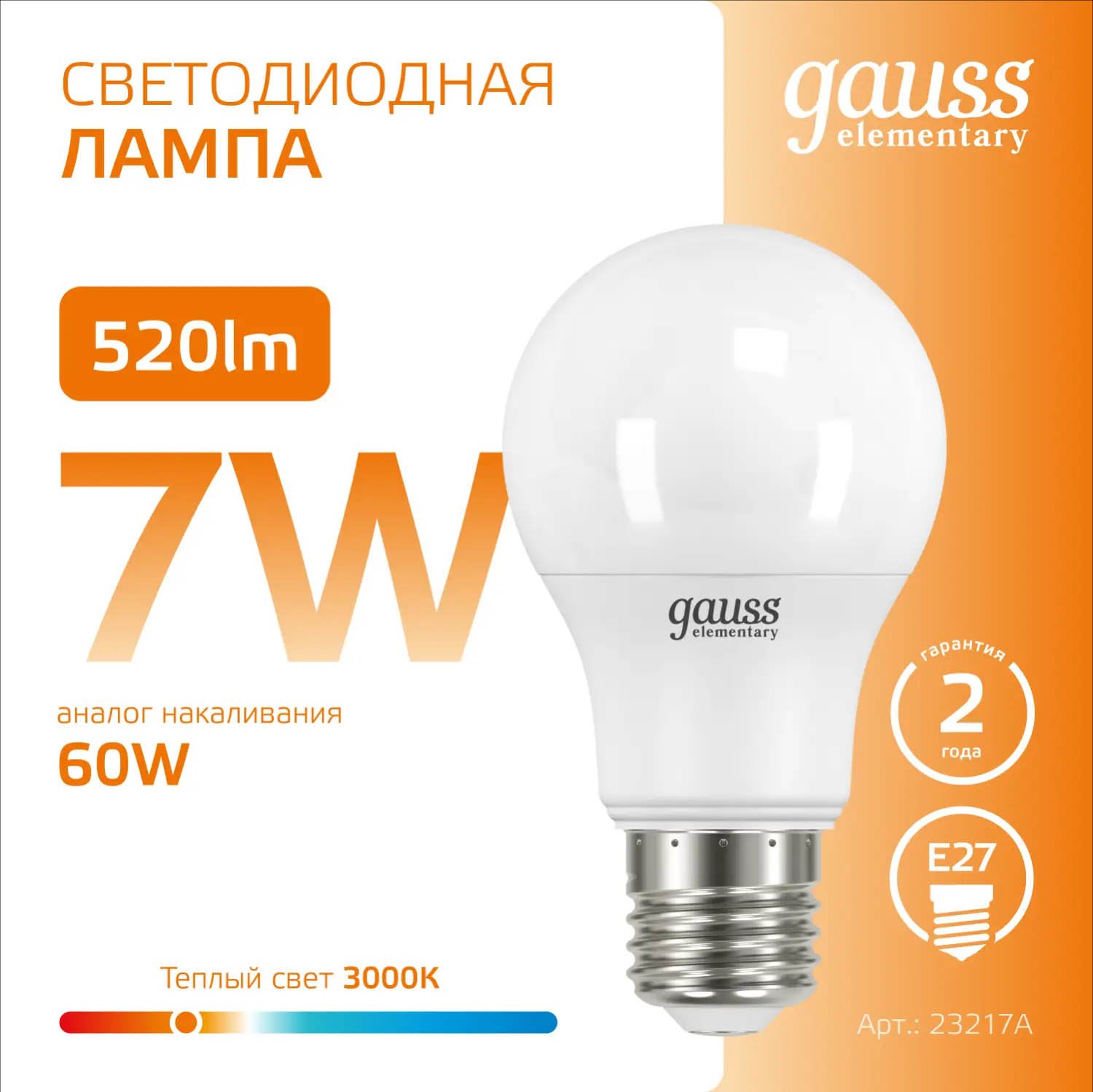 Лампа светодиодная ЛОН A60 7Вт 3000К 520Лм Е27 GAUSS Elementary