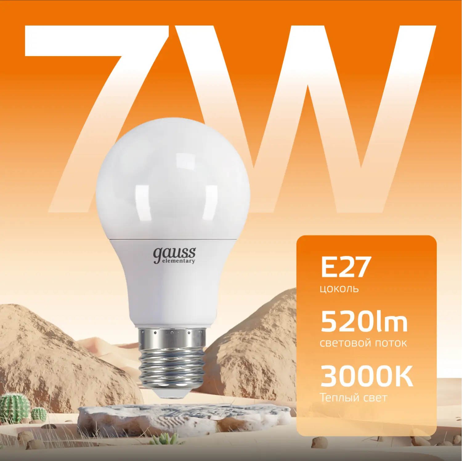 Лампа светодиодная А60 7Вт 3000К 520Лм Е27 Gauss предназначена для освещения помещений общественного назначения.
