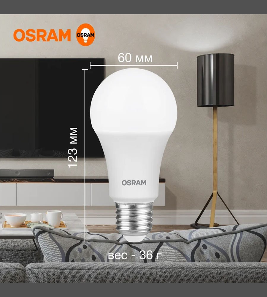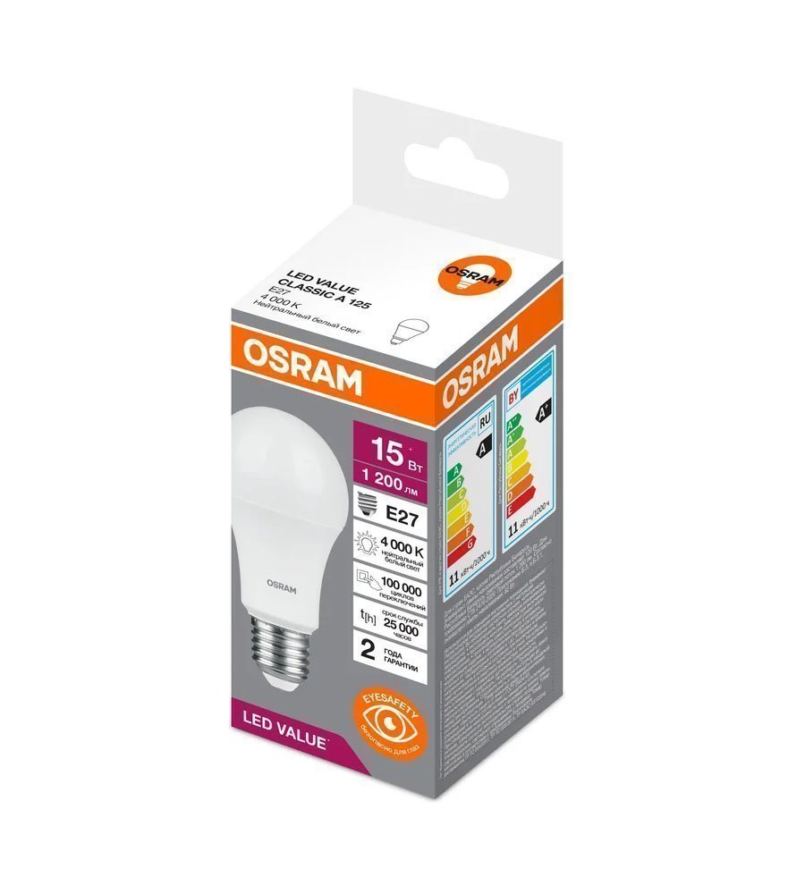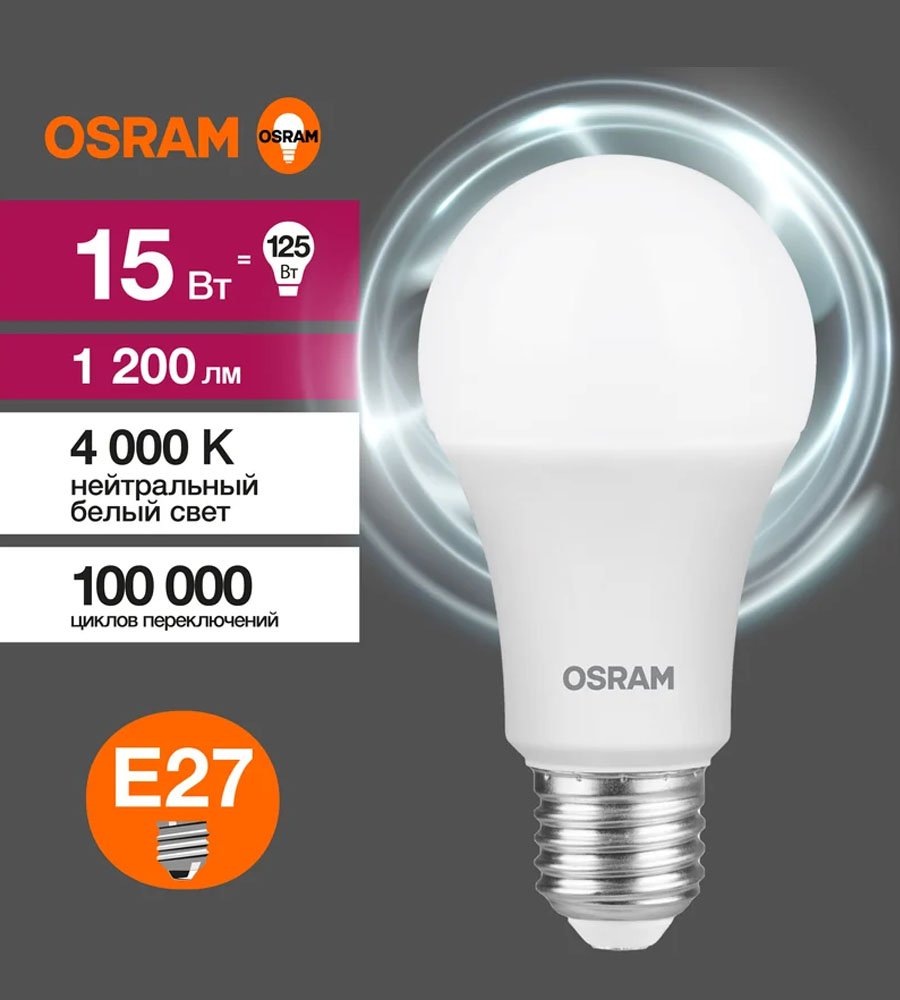 Лампа светодиодная ЛОНLED Value A60 15Вт 1200Лм E27 OSRAM является энергоэффективным решением для освещения помещений. Она имеет мощность 15 Вт и способна заменить 125 Вт лампу накаливания. Лампа оснащена цоколем E27 и имеет форму колбы А60.