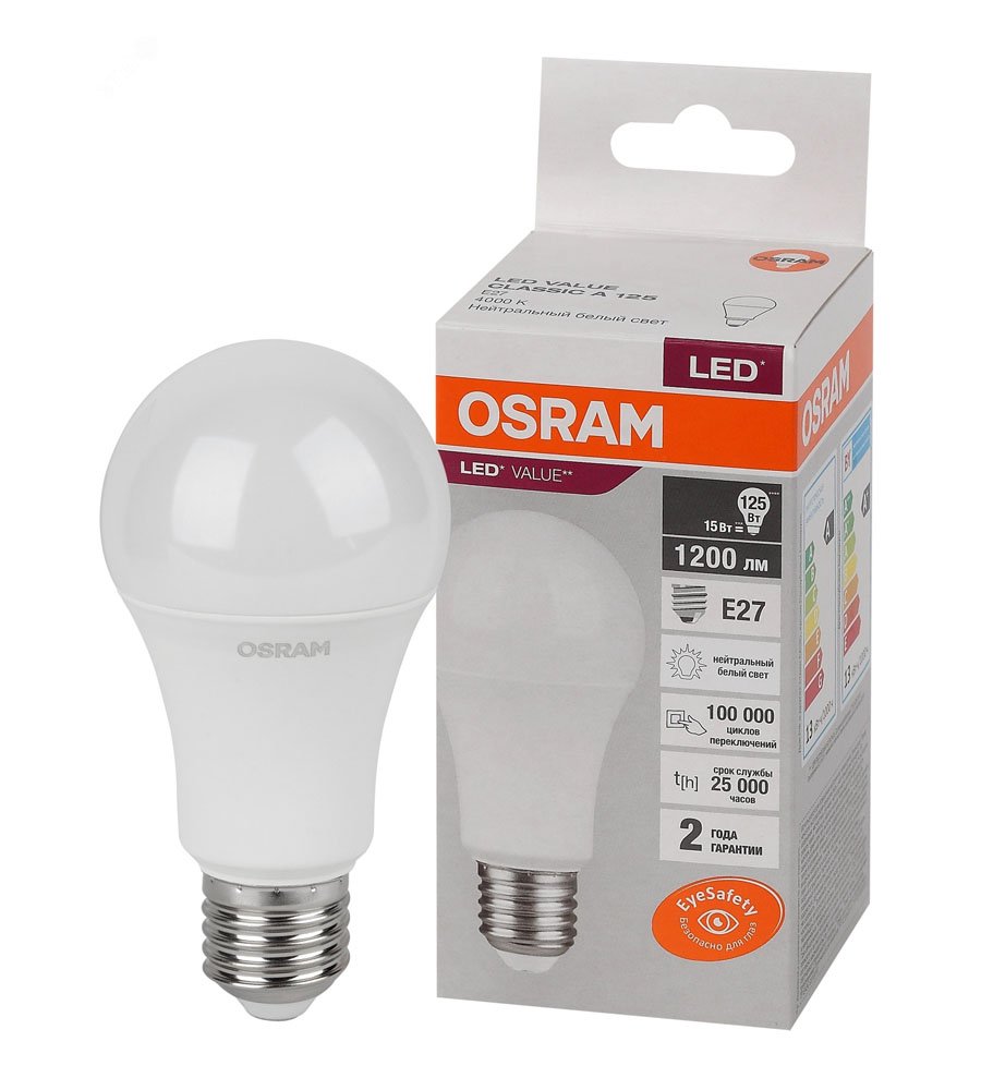 Лампа светодиодная ЛОНLED Value A60 15Вт 1200Лм E27 OSRAM