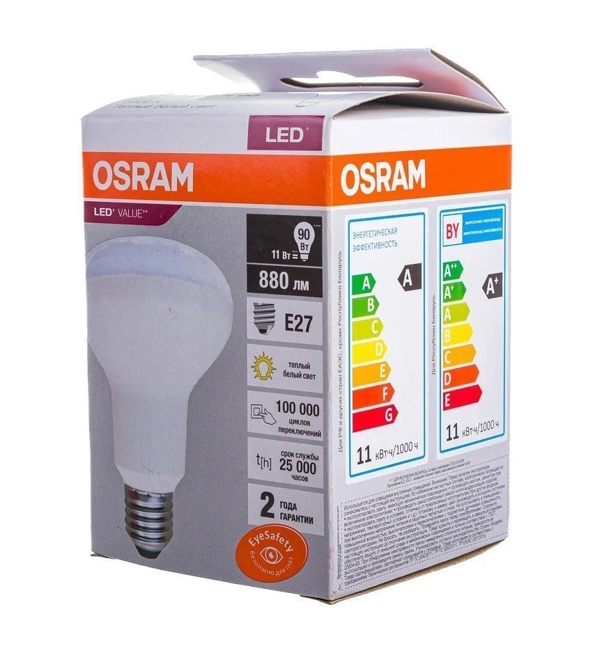 Лампа светодиодная  R80 11Вт=90Вт E27 3000К 880Лм OSRAM серия Value предназначена для оформления и освещения помещений.