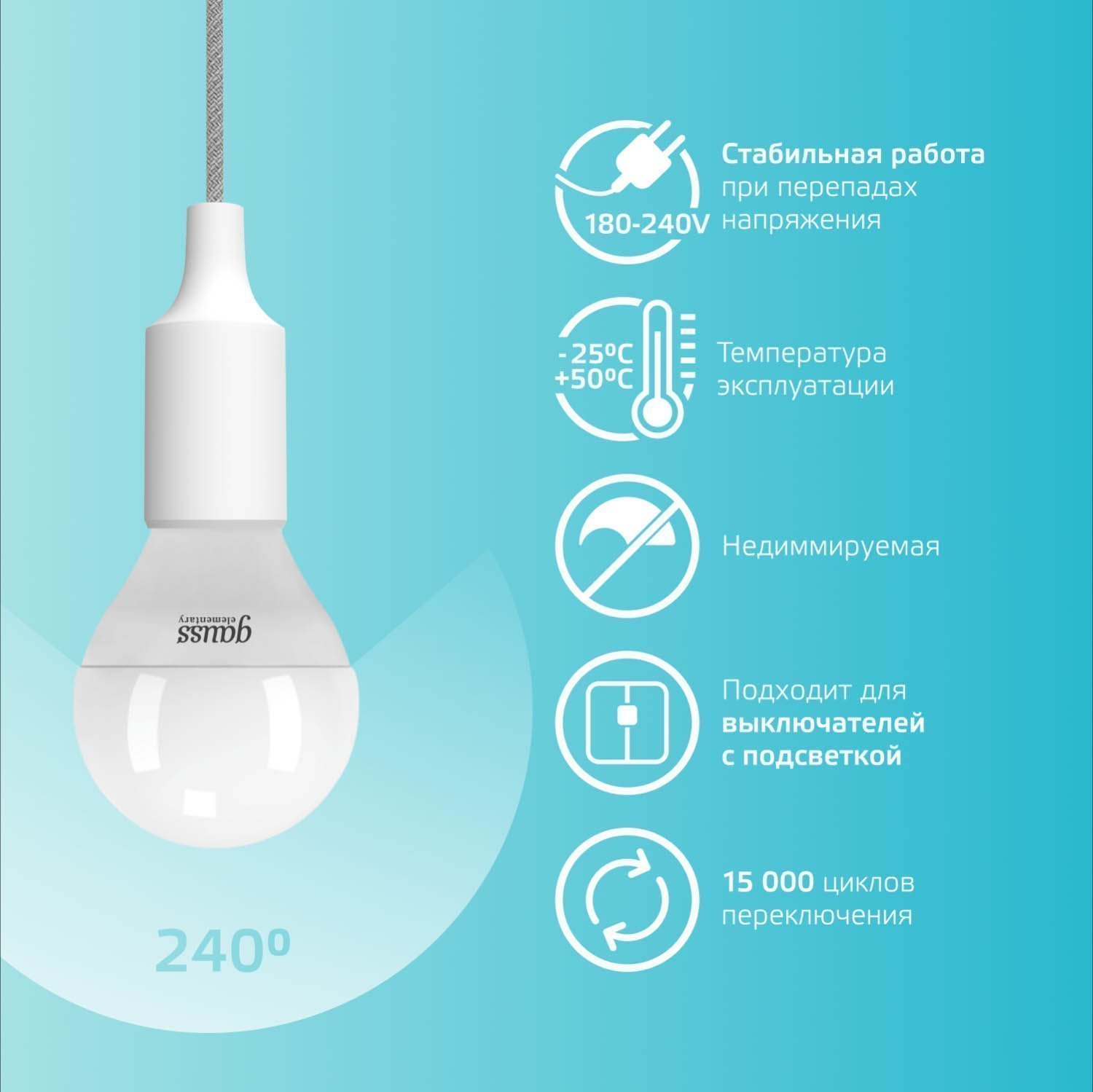 Лампа светодиодная шар G45 10Вт 4100K 730Лм E14 GAUSS Elementary предназначена для оформления и освещения помещений.