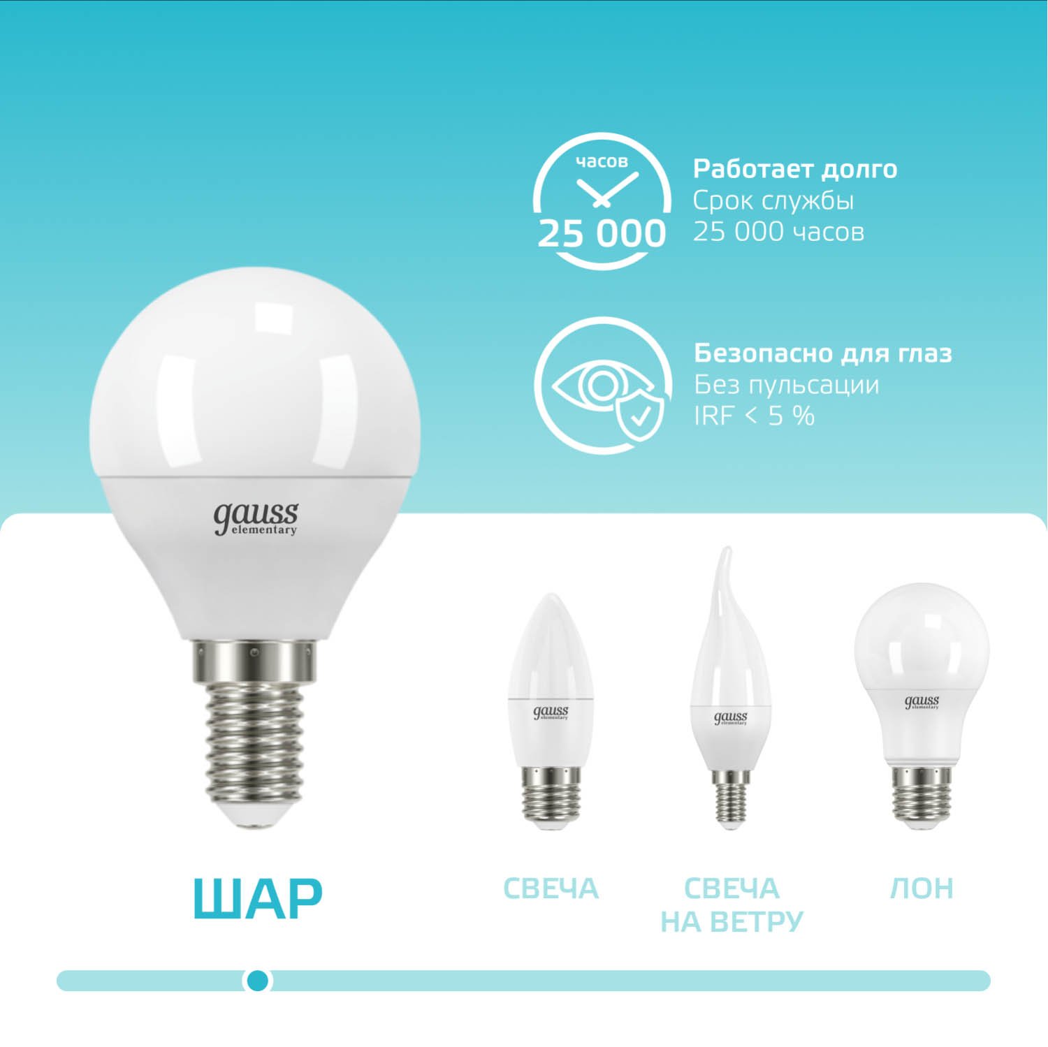 Лампа LED 12Вт=95Вт E14 4100K 920Лм шар Gauss Elementary предназначена для оформления и освещения помещений.