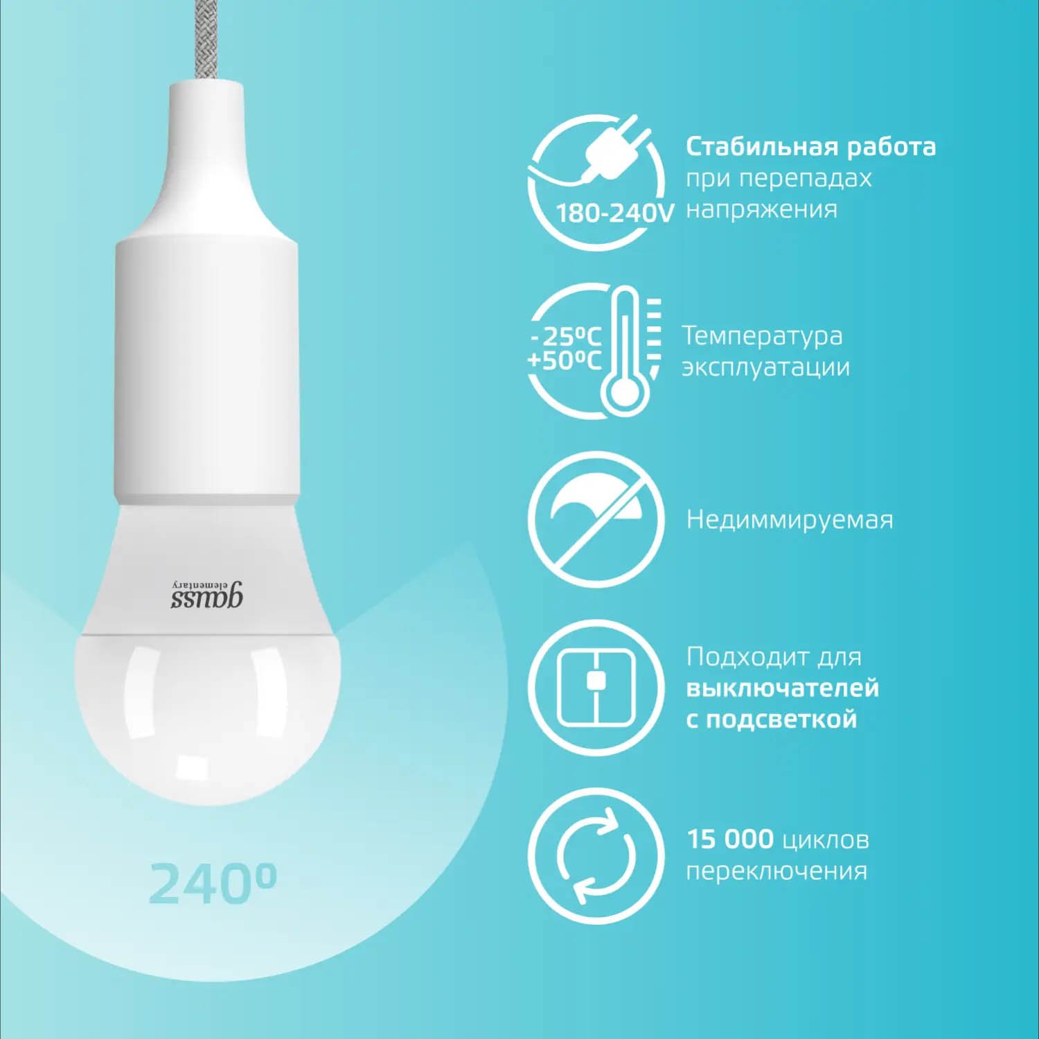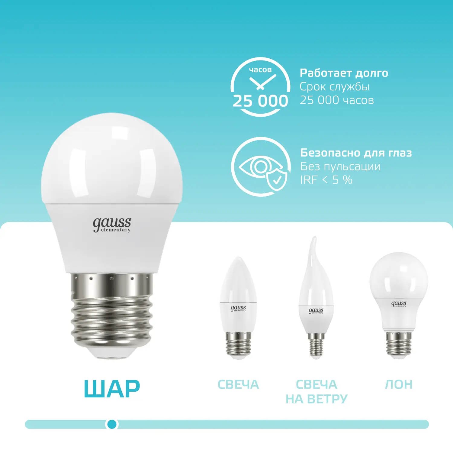Лампа светодиодная шар 6Вт 4100К 450Лм Е27 Gauss Elementary предназначена для оформления и освещения помещений.