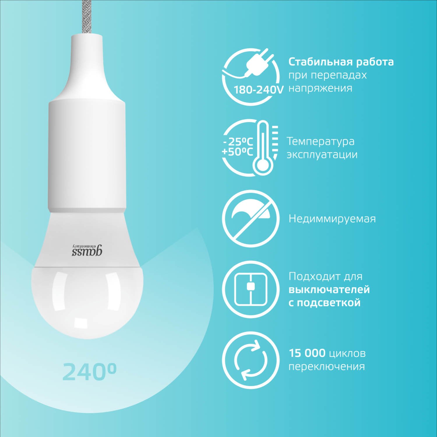 Лампа LED 8Вт=75Вт E27 4100K 540Лм шар Gauss Elementary предназначена для оформления и освещения помещений.