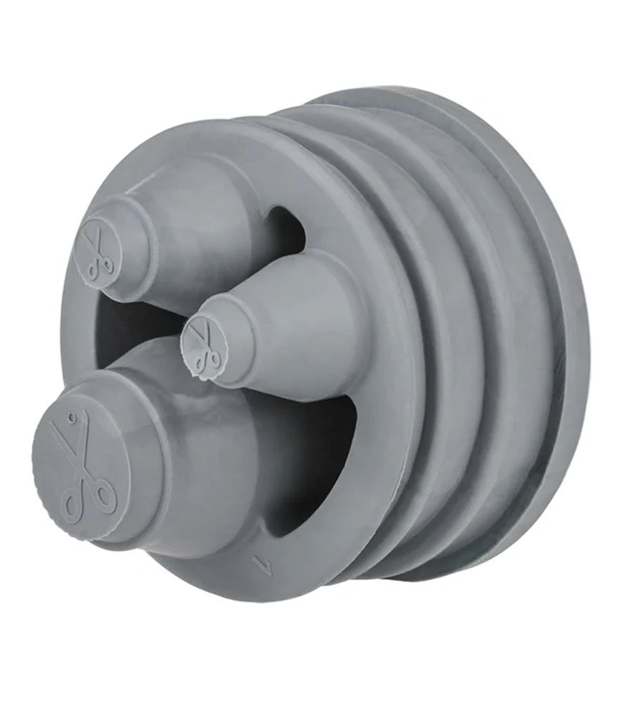 Конструкция изделия обеспечивает возможность подключения от одного до трех шлангов разного диаметра через одну манжету. Внутренний просвет каждого отверстия надежно и герметично фиксирует шланг соответствующего диаметра, предотвращая протечки и обеспечивая долговечность соединения.
