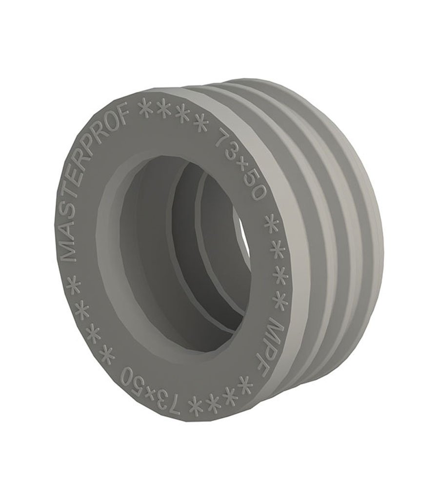 Обеспечивает плотный герметичный стык труб с размерами d1= 50 мм и d2 = 73 мм в канализационных, водообеспечивающих системах.