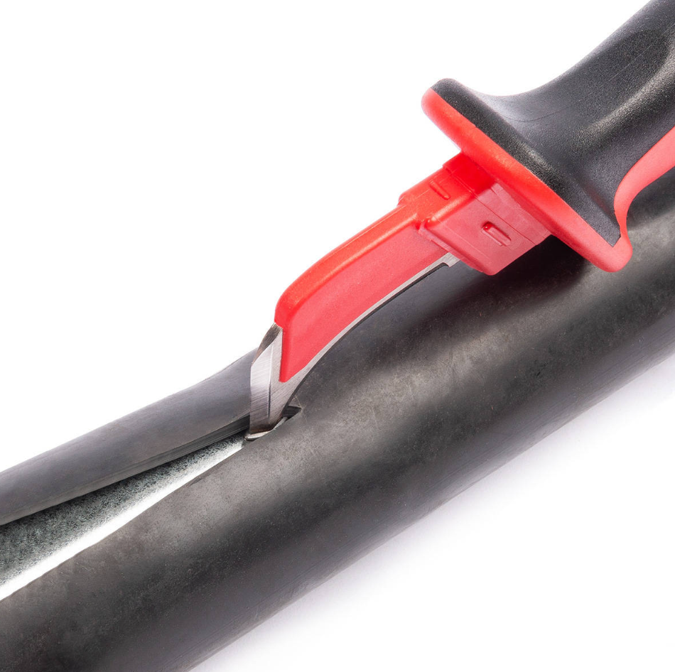 Нож изолированный НМИ-01А с малой пяткой (КВТ). Частично изолированное изогнутое лезвие с «пяткой» для легкого вскрытия оболочки кабеля без риска повреждения жилы.