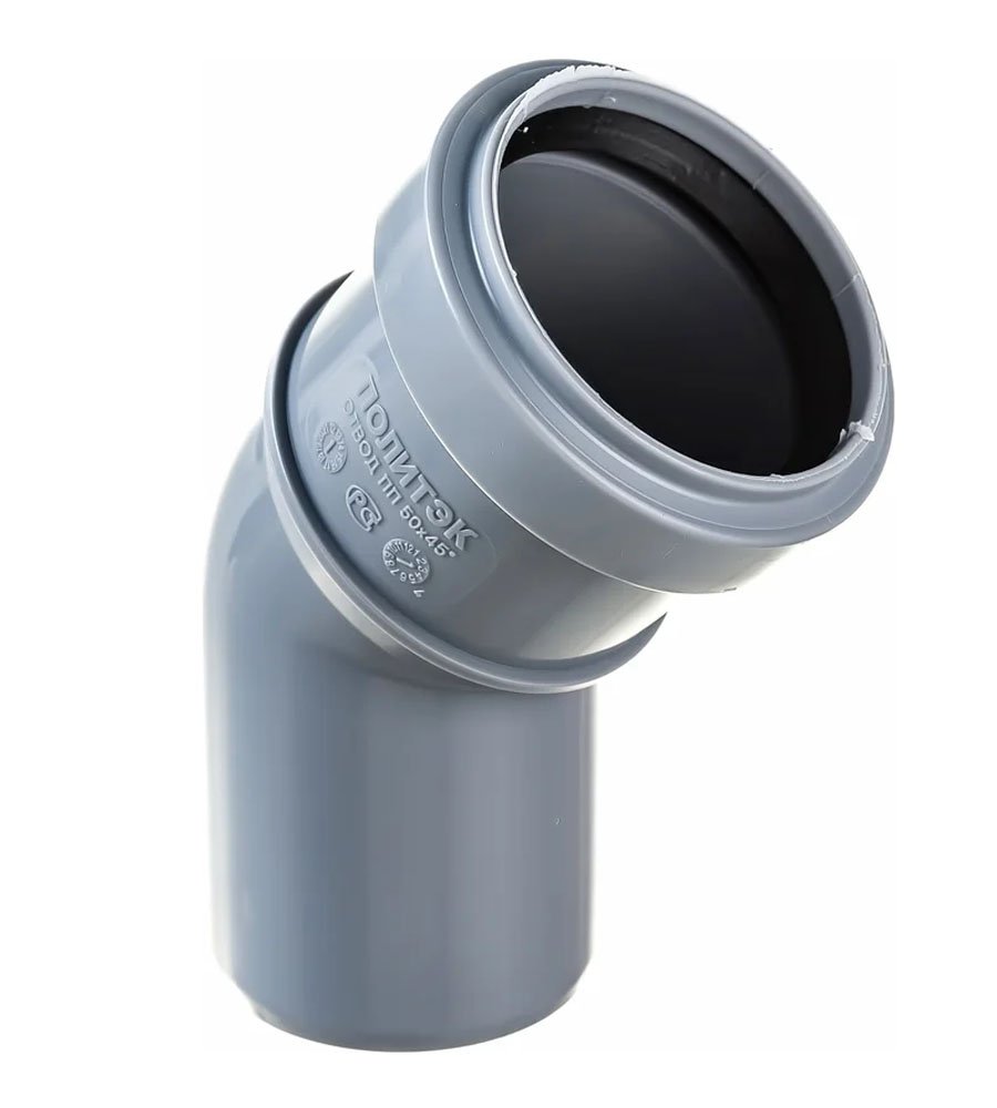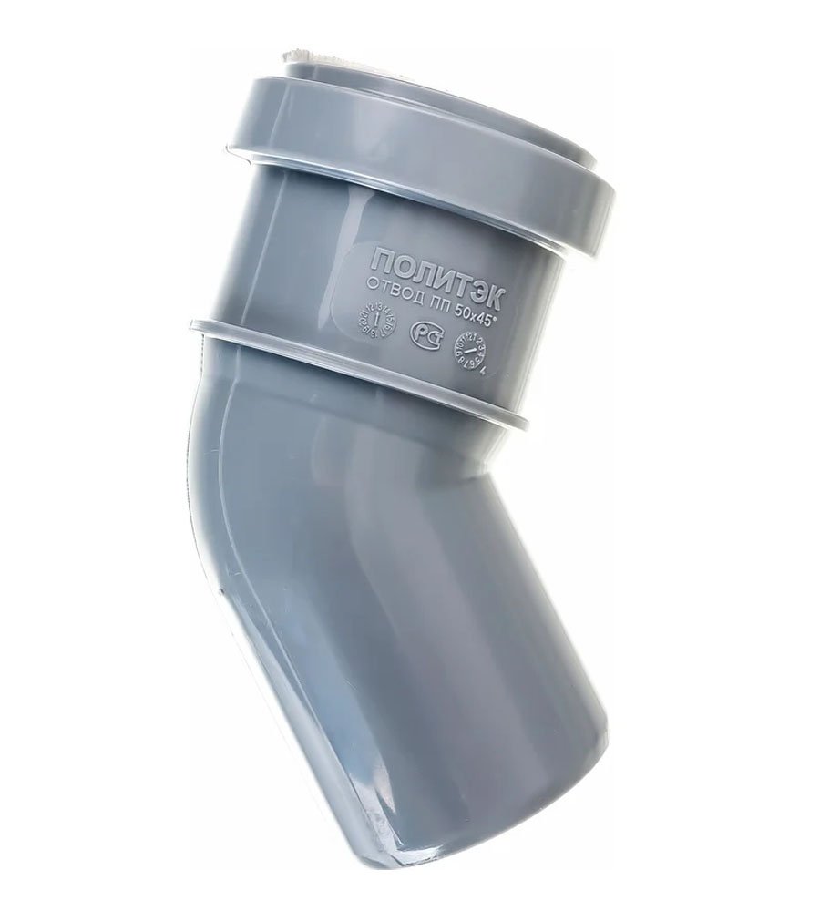 Отвод ПП  50х45 "Политэк" применяется для изменения направления прокладки труб в ходе монтажа. Благодаря канализационным отводам можно повернуть трубу в любую сторону.