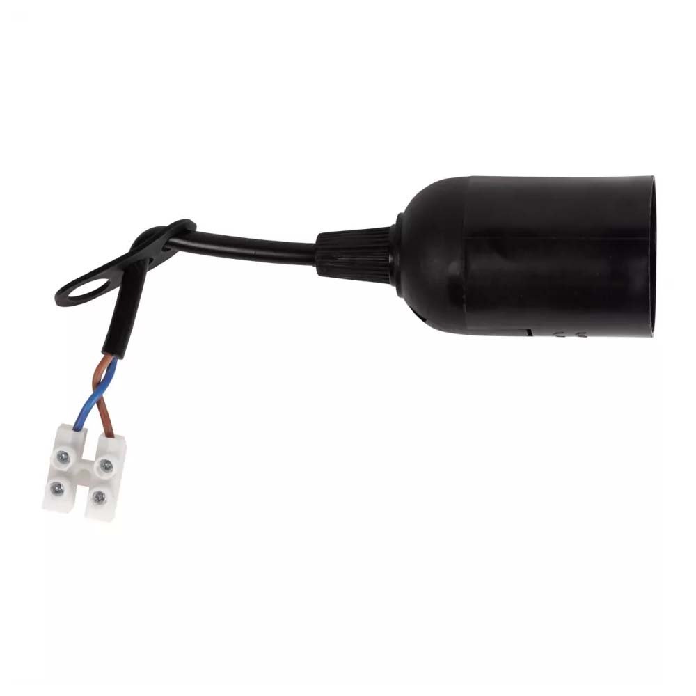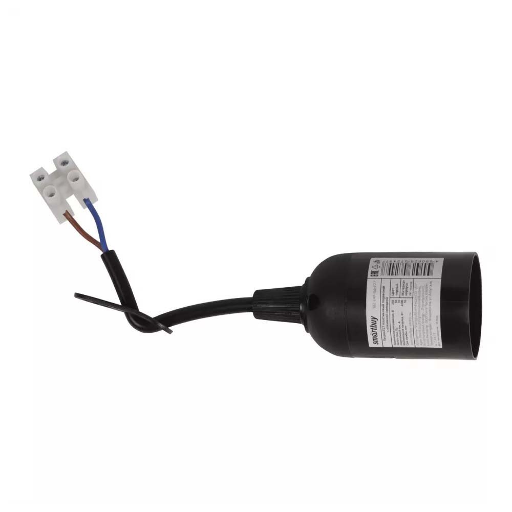 Патрон Е27 подвесной с клеммной колодкой (пластиковый) черный SmartBuy подходит для использования с лампами мощностью до 2200 Вт.