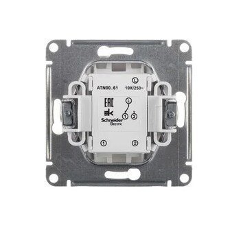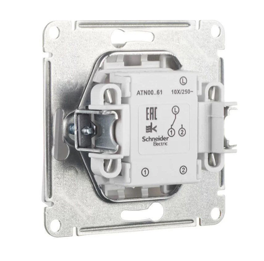 Механизм Schneider Electric Glossa переключателя 1-клавишного подходит для сетей 250 В, на ток 10 А. Переключатель позволяют управлять одним источником света с двух точек. Выполнен из материала PС+ASA, стойкого к УФ-излучению и появлению царапин. Эргономичные клеммы расположены в два ряда: сверху и снизу.