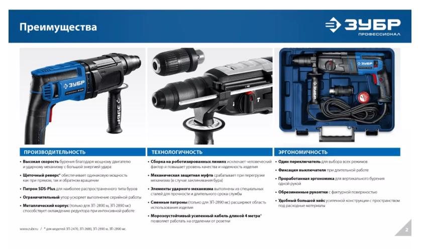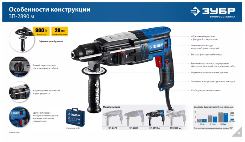 • Новый флагман в линейке перфораторов ЗУБР