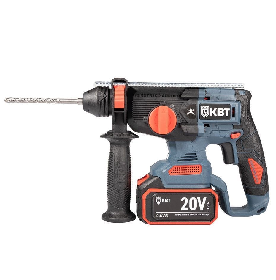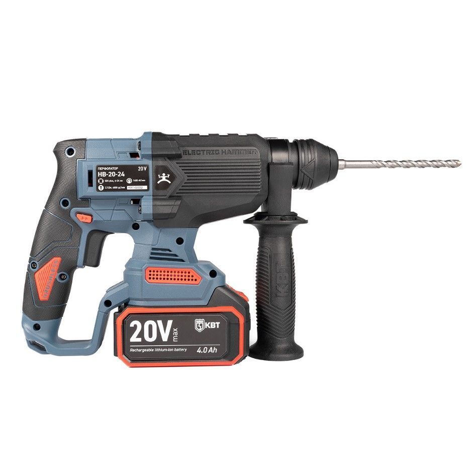 Перфоратор бесщеточный 20В (4 Ач) 2 АКБ 2.5Дж HB-20-24 серия ПРОФИ КВТ предназначен для работы с камнем, бетоном, разрушения твердых материалов в режиме ударного сверления, а также для безударного сверления дерева, металла, керамики, пластмассы и др. материалов.