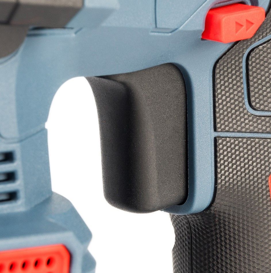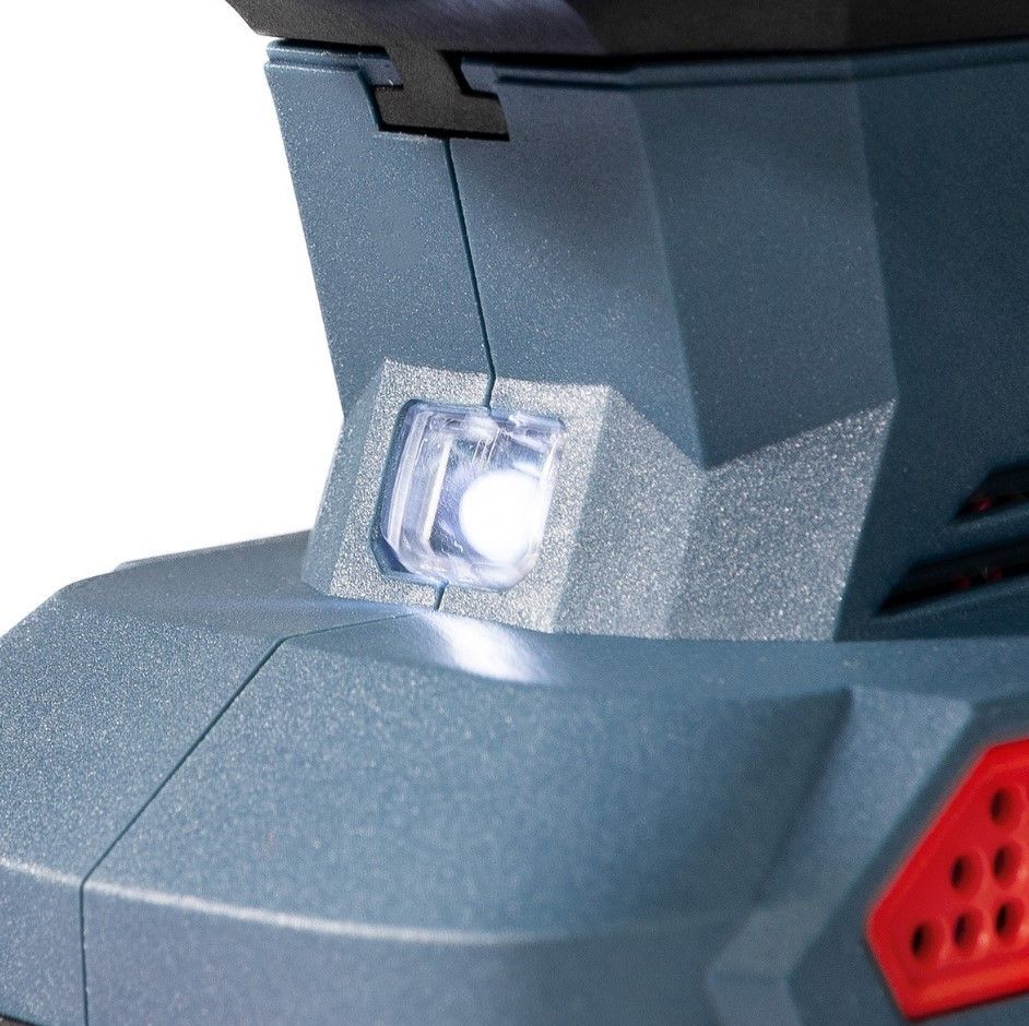 Перфоратор оснащен светодиодной подсветкой рабочей зоны для улучшения видимости в условиях недостаточного освещения, а также светодиодным индикатором уровня заряда батареи. Защита аккумуляторной батареи от замыкания, перегрева, перенапряжения и пониженного напряжения, обеспечивая ее долгий срок службы. Перфоратор имеет защиту от обратного удара. Время полной зарядки аккумулятора составляет 60–90 минут.