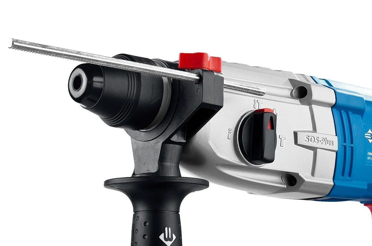 Перфоратор ЗУБР Профессионал SDS Plus ЗП-28-800 К имеет усовершенствованный ударный механизм, что обеспечивает высокую производительность. Дополнительная рукоятка позволяет лучше удерживать инструмент. Предусмотрено три режима работы: сверление, сверление с ударом, долбление. Также есть режим поворота долота. Модель поставляется в кейсе.