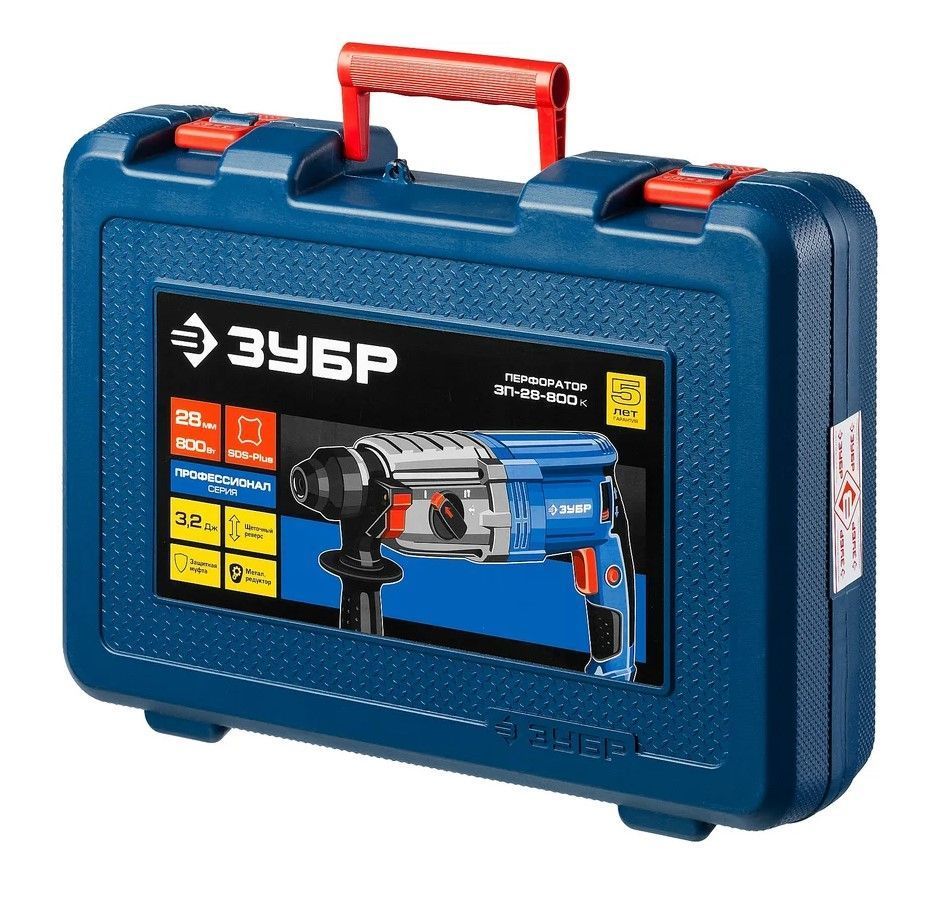 Перфоратор SDS-plus 800Вт (3.2 J) кейс Профессионал ЗУБР (ЗП-28-800 К) применяется для сверления и бурения в бетоне, долбежных работ, перемешивания ЛКМ при установке соответствующего расходного инструмента.