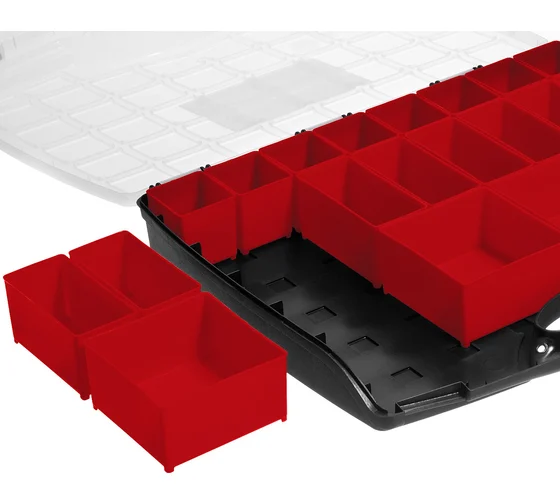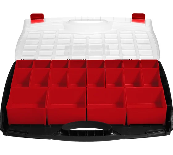 Пластиковый органайзер со съемными лотками ВОЛГА-20 425 х 330 х 60 мм ЗУБР 38034-20 удобен для хранения мелочей в виде небольшого крепежа, метизов или соединителей.
