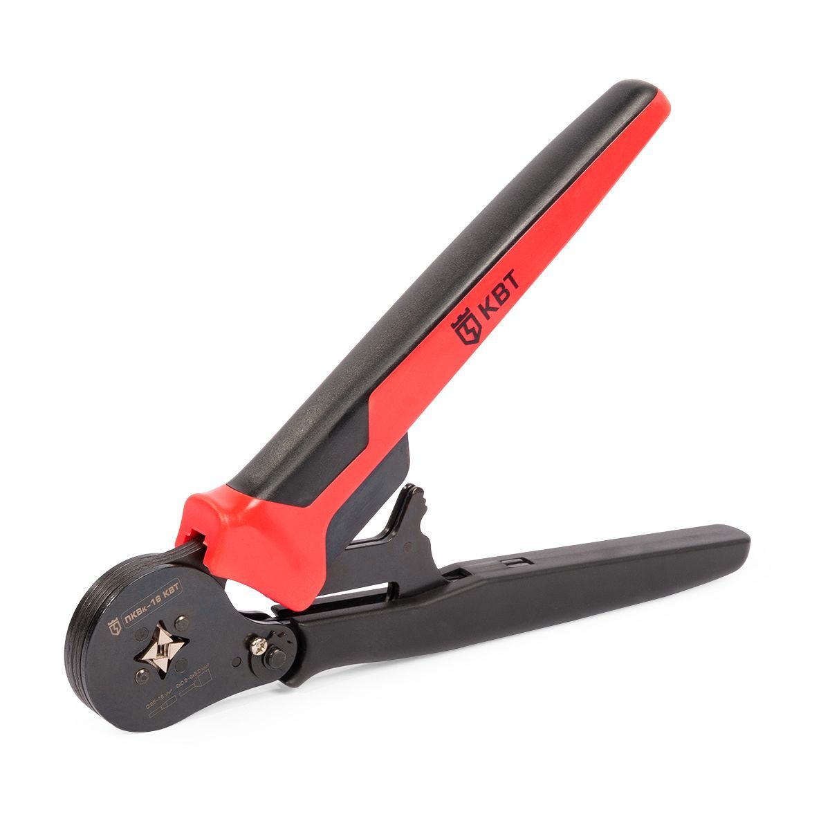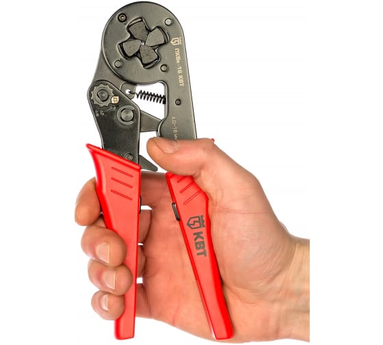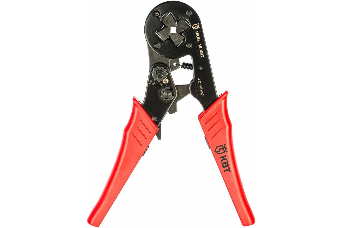 Пресс-клещи КВТ ПКВк-16 54549 находят свое применение в профессиональной сфере деятельности для опрессовки коннекторов только на многожильных медных проводах. Инструмент подходит для работы с втулочными наконечниками в диапазоне сечений НШВИ, НШВ: 6.0–16 мм² и НШВИ(2): 2х4.0–2х6.0 мм². На все типоразмеры диапазона предусмотрена одна саморегулирующаяся матрица.