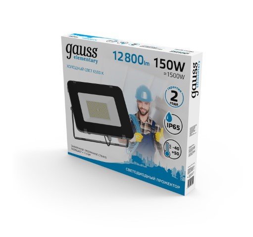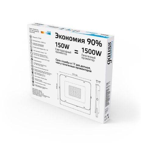Прожектор светодиодный 150Вт 6500К 13500Лм IP65 GAUSS Elementary G2 черный