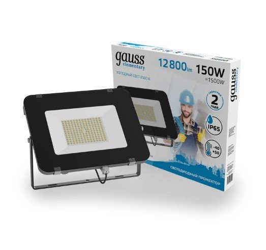 Светодиодный прожектор 150Вт 6500К 13500Лм IP65 GAUSS Elementary G2 черный 691511150 создан для экстерьерной общей подсветки зданий и сооружений, освещения складов, промышленных и торговых объектов, а также ландшафтных объектов, теперь имеет улучшенную модификацию корпуса.